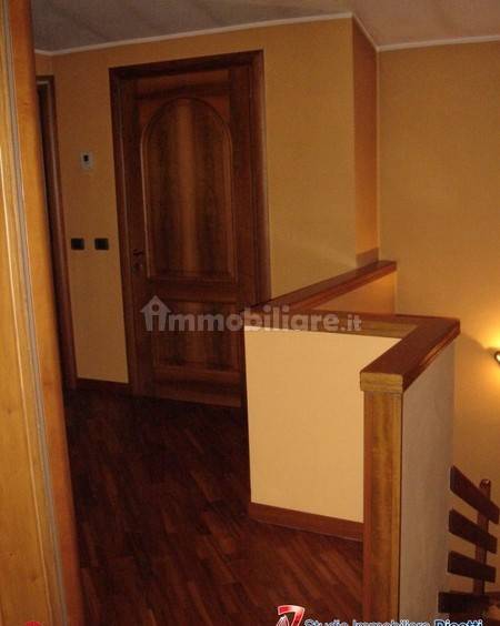 Fabbricato in paese composto da due unità immobiliari, un appartamento su due livelli, composto da soggiorno con caminetto, cucina, tre camere, due bagni, ed un appartamento composto da soggiorno con angolo cottura, una camera, bagno e balcone; ampio garage, e cantina a volta. - IMM.108