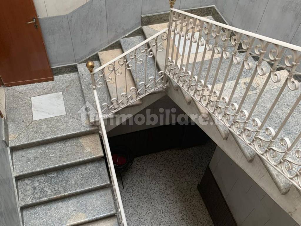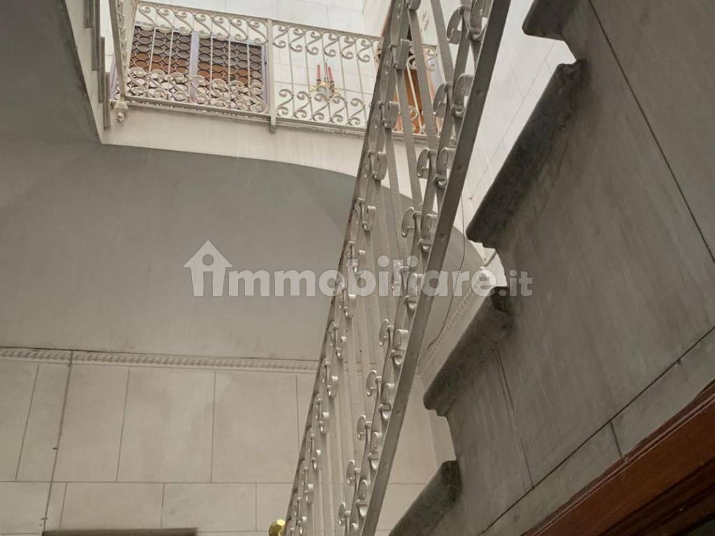 Molto bella la scala in marmo che dà l’accesso ai piani della casa e che è illuminata da un imponente lucernario.