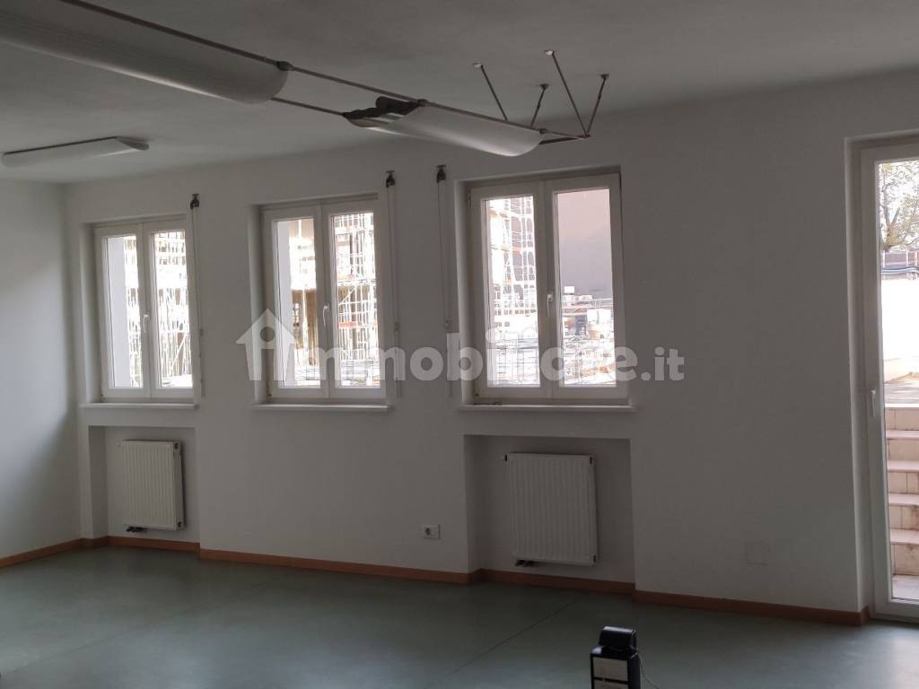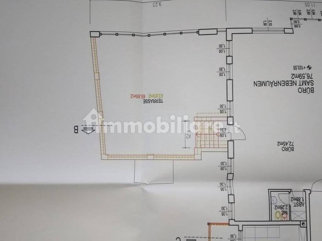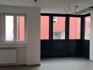 Affitto luminoso studio di 87mq con ampio terrazzo in pieno centro pedonale di Laives con posto macchina. L'ufficio si trova in una palazzina costruita nel 2003 con ascensore.