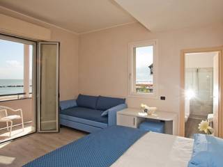 Tutte le camere sono molto ampie e dotate di bagni con doccia finestrati, la maggior parte dispone anche della vista mare e di un balcone. Arredate con gusto ed in buono stato di conservazione, sono fornite di una tv da 22 pollici con ricezione dei canali satellitari