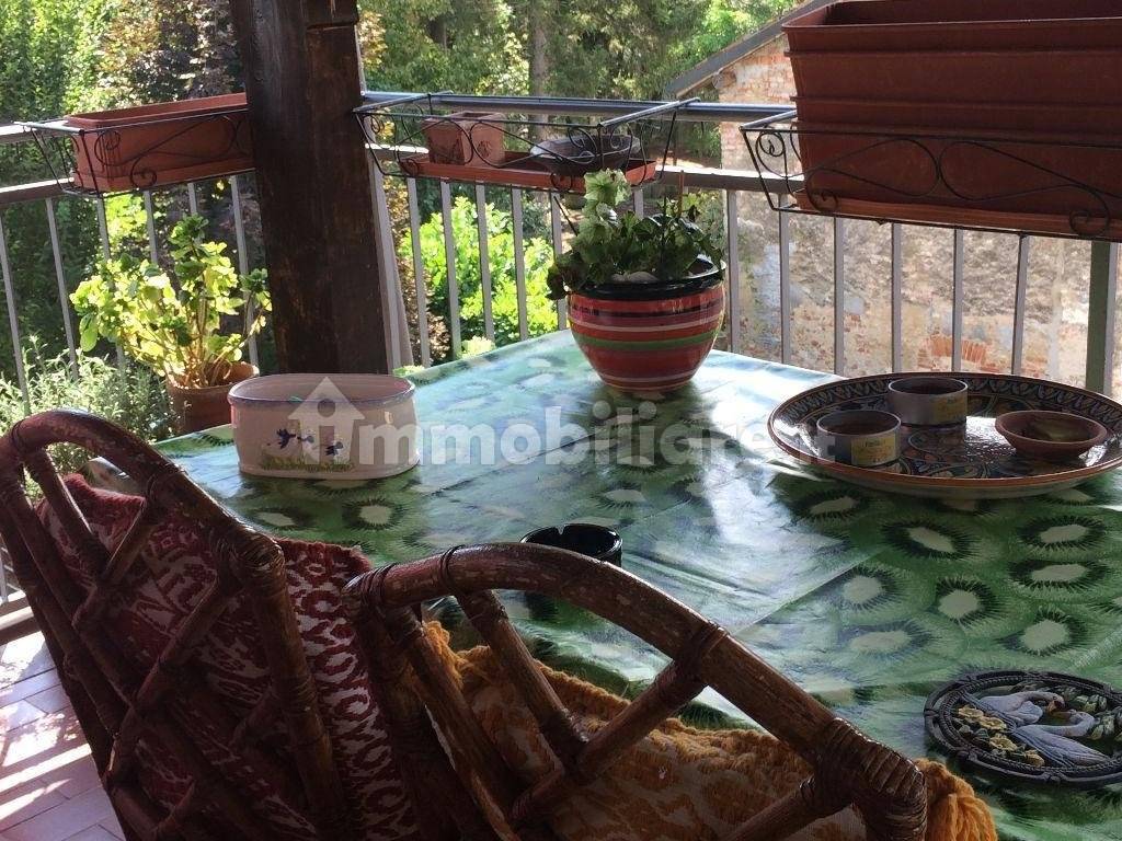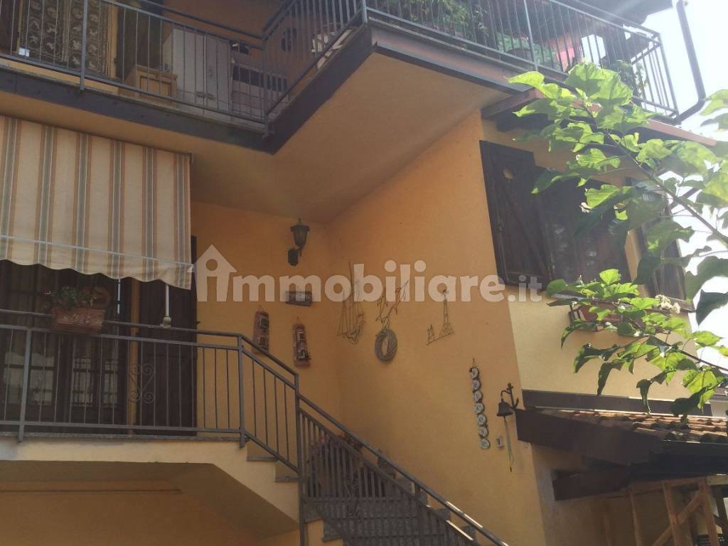 Casa indipendente su 2 piani che si affaccia su una corte comune di proprietà, con piccolo giardino privato. Completamente ristrutturata, riscaldamento a gas metano e stufa a legna in ceramica, la casa è suddivisa: piano terra taverna con accesso tramite scala a chiocciola, primo piano composto da ingresso, camera matrimoniale, bagno con doccia, soggiorno con scala in marmo per accedere al secondo piano, composto da ripostiglio, camera matrimoniale, bagno con vasca, cucina living con accesso a terrazzo abitabile.Due ampi balconi con affaccio sulla corte e uno con affaccio su strada privata, inferriate su tutte le porte finestre, climatizzatori in tutte le stanze, tende da sole.