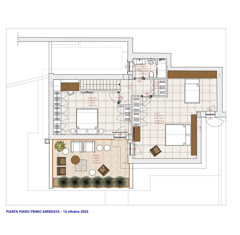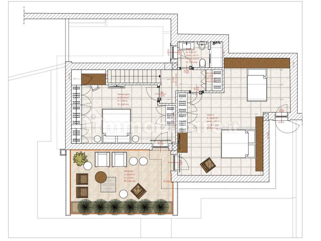 • Veranda di 26 m² sul giardino e terrazzo panoramico di 25 m² al piano superiore