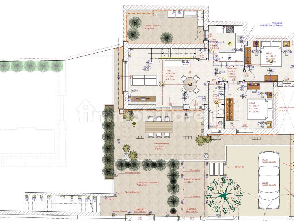 • Zona giorno al piano rialzato con soggiorno-pranzo, cucina abitabile, studio e bagno