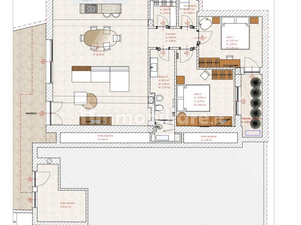 • Posti auto interni, vani tecnici, lavanderia e ripostiglio