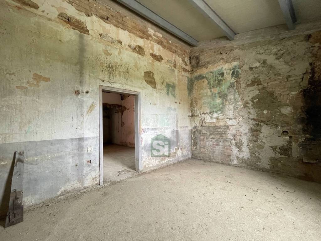 Sebbene necessiti di una ristrutturazione completa, il tetto è già stato ricostruito con pannelli sandwich e il solaio è stato rifatto con travetti di ferro e tavelloni, offrendo una base solida per i futuri lavori.
