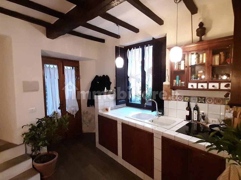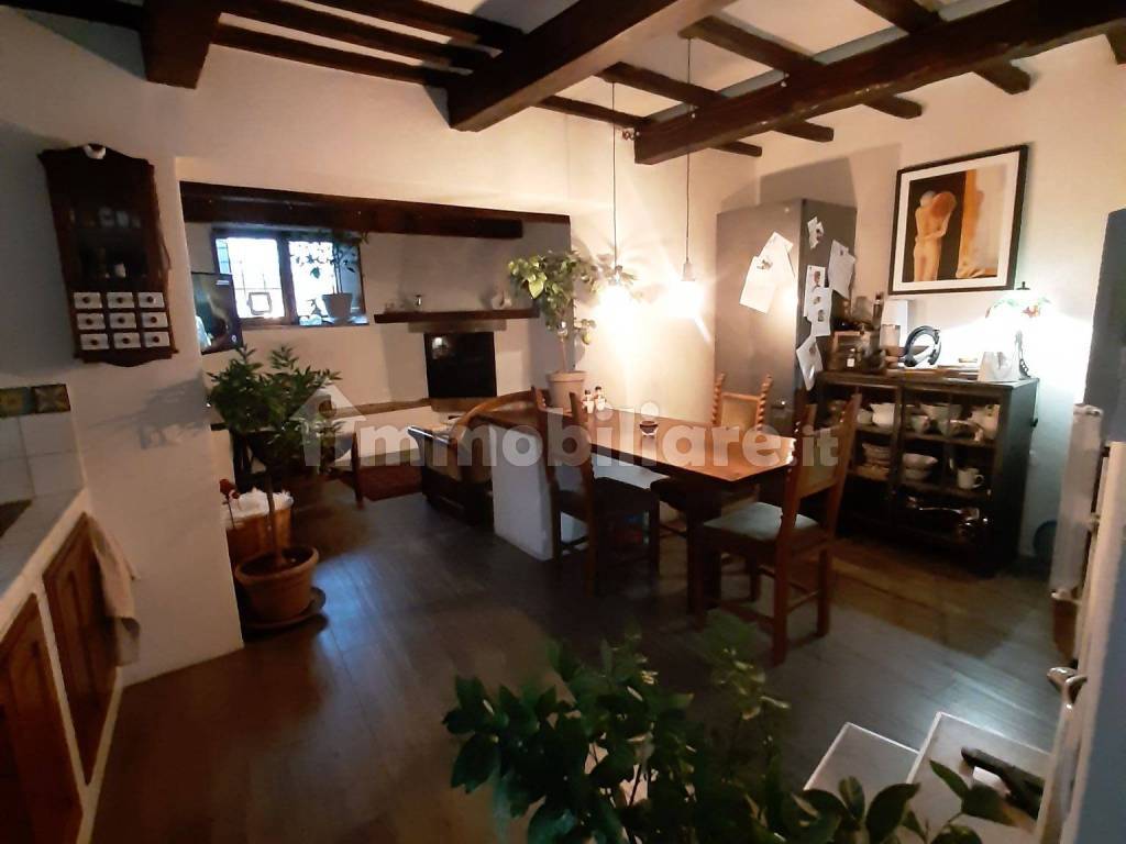 P.terra: cucina e salotto con camino, bagno con vasca e ripostiglio esterno. P. Primo: ampio bagno con doccia e vano lavanderia, camera singola/studio con caminetto, camera matrimoniale con cabina armadio. Parcheggio comune a 20 mt. Molto ben servito dai servizi pubblici.