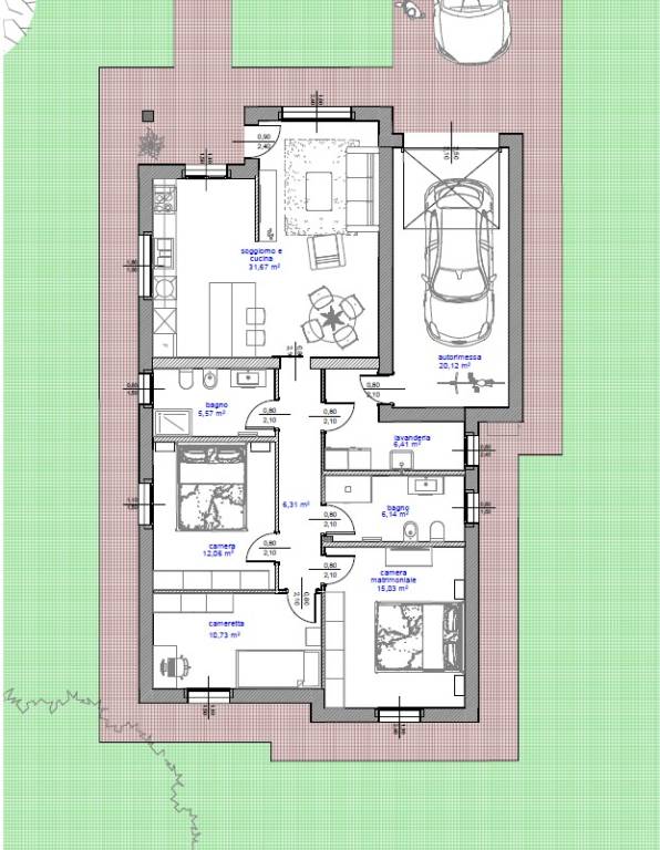 Superficie idonea alla realizzazione di villa singola anche tutta su un piano o bifamiliare fino a 200 mq di superficie con esposizione a scelta potendo beneficiare del doppio accesso carraio.