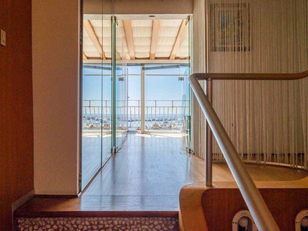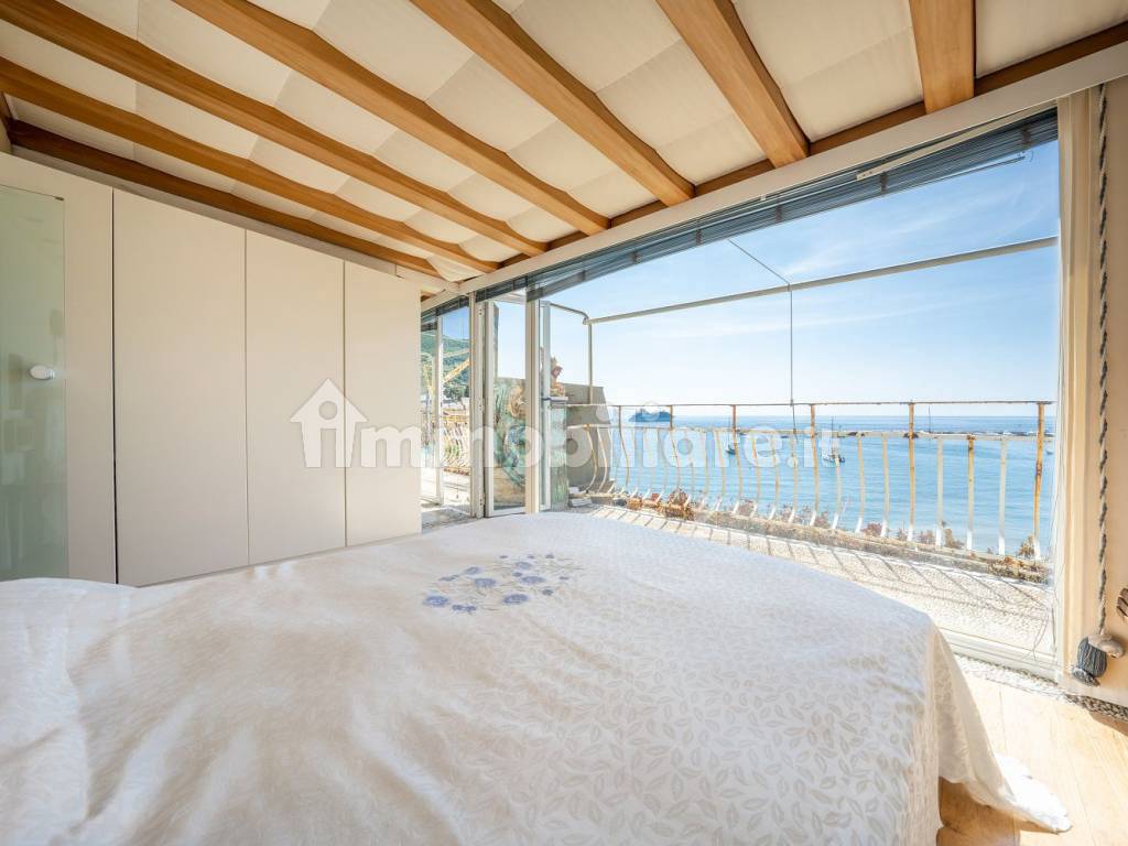 2 livello: spettacolare camera da letto matrimoniale con due finestre sul mare che danno accesso al balcone, spogliatoio, ripostiglio e bagno.