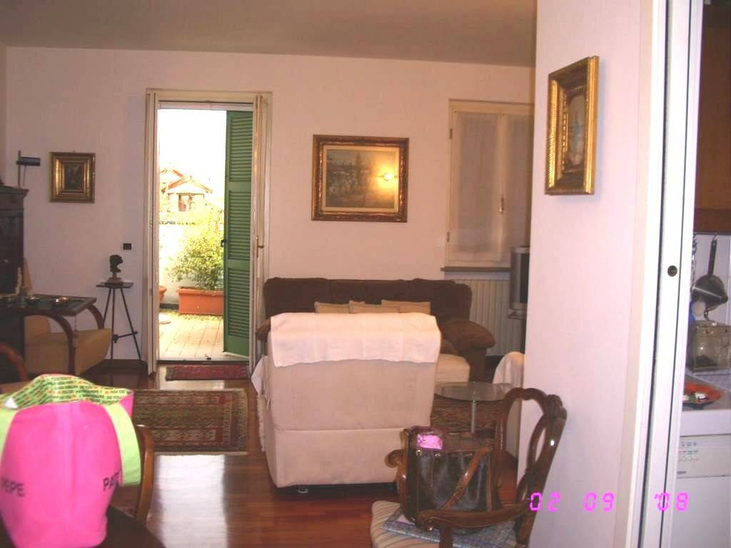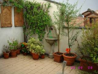 Magnifico attico in casa d'epoca ristrutturata, finiture di lusso, parquet di pregio, infissi in legno con doppi vetri e zanzariere. Persiane in legno ben curate. Casa molto luminosa, sita al secondo ed ultimo piano con ascensore esclusivo. Porta blindata. Allarme. Cassaforte a muro. Entrando, si trova un picco ingresso con lo spazio per eventuale scaffalatura o armadio a muro in insenatura. Da qui si accede, tramite porta scoerevole a scomparsa laccata bianca alla zona lavanderia sulla sinistra con lavatoio, attacco per lavatrice ampia zona per scaffatura e zona caldaia..Grande sala centrale con sala da pranzo a vista, l'una che dà su una grande terrazza abitabile e vivibile anche d'estate perché di pomeriggio è all'ombra, con sottetetto porta attrezzatura chiuso con porta a vetri, l'altra che dà su un terrazzino con ringhiera in ferro battuto e pietra antica. La cucina, è molto ampia e abitabile con una finestra e una porta finestra con ri ringhiera ed ha un Office adiacente completamente scaffalato per riporre piatti, pentole e quant'altro.