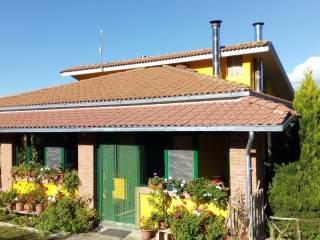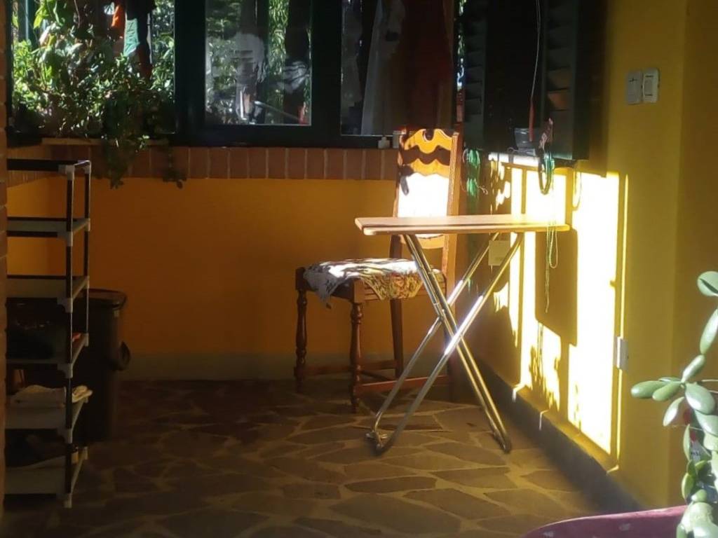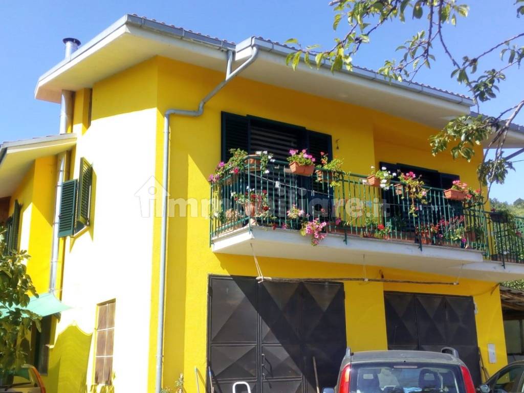 La casa è posta su due piani così composti: appartamento di circa 85 mq composto da pianerottolo di ingresso con veranda, soggiorno, cucina, disimpegno, bagno, camera adibita a ripostiglio e due camere da letto (una singola e una matrimoniale) dalle quali si può accedere al terrazzo tramite i balconi. Tramite scala interna si accede al piano inferiore dove ci sono due capienti cantine, una tavernetta con camino e forno a legna e due garage(uno di circa 40 mq e l'altro di 16 mq).