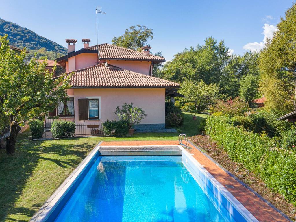 A pochi passi dal centro paese ma in posizione tranquilla e panoramica, si vende questa villa singola caratterizzata da finiture signorili con porticati e giardino privato con piscina e orto.