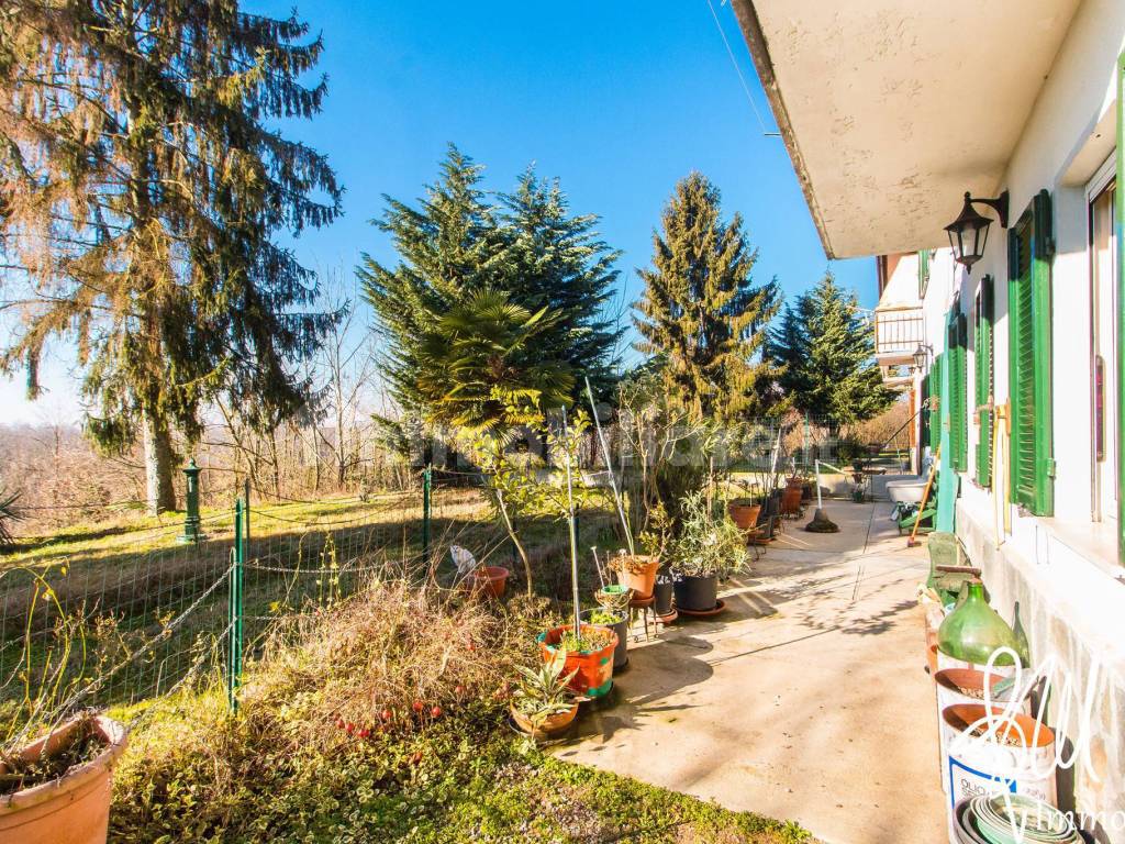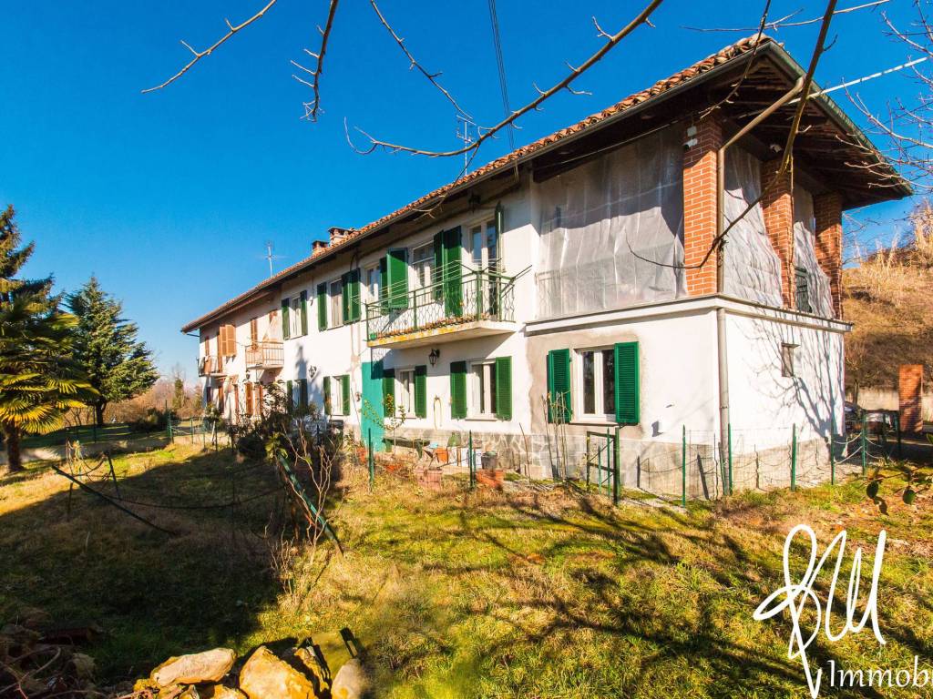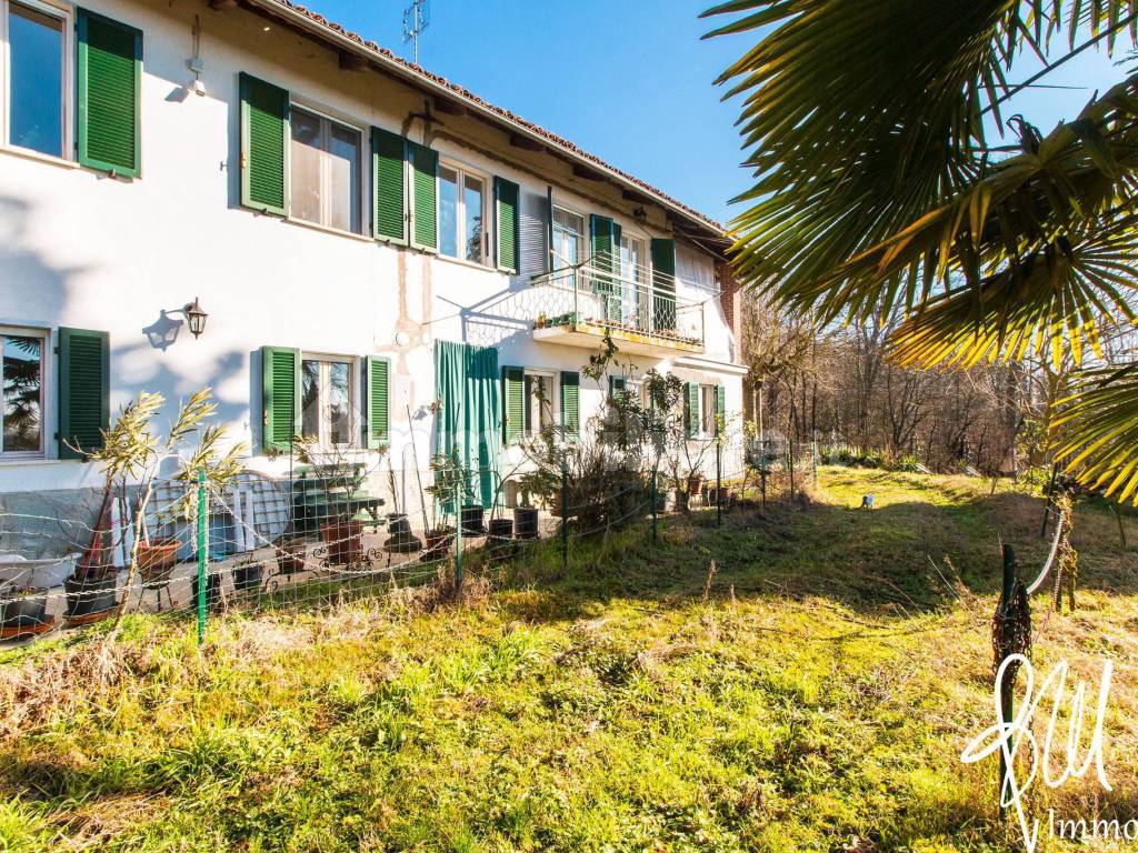 Cortazzone (AT), nella terra dei tartufi, a 10 km da Baldichieri, 50 km da Torino e 145 km da Milano: in piccolo contesto residenziale, deliziosa casa libera su 3 lati e distribuita su 2 livelli, di mq 156, con giardino recintato, ristrutturata una ventina di anni fa, con tetto completamente rivisto, vespaio, infissi in legno e doppio vetro, camino funzionante, antifurto con videosorveglianza, impianto di riscaldamento a metano sezionato, fossa biologica, sottotetto accessibile da botola, e grande terrazzo panoramico piastrellato, oltre ad ampia cantina ed autorimessa di mq 17 a piano terra e terreni (a bosco ceduo) per mq 2.150.