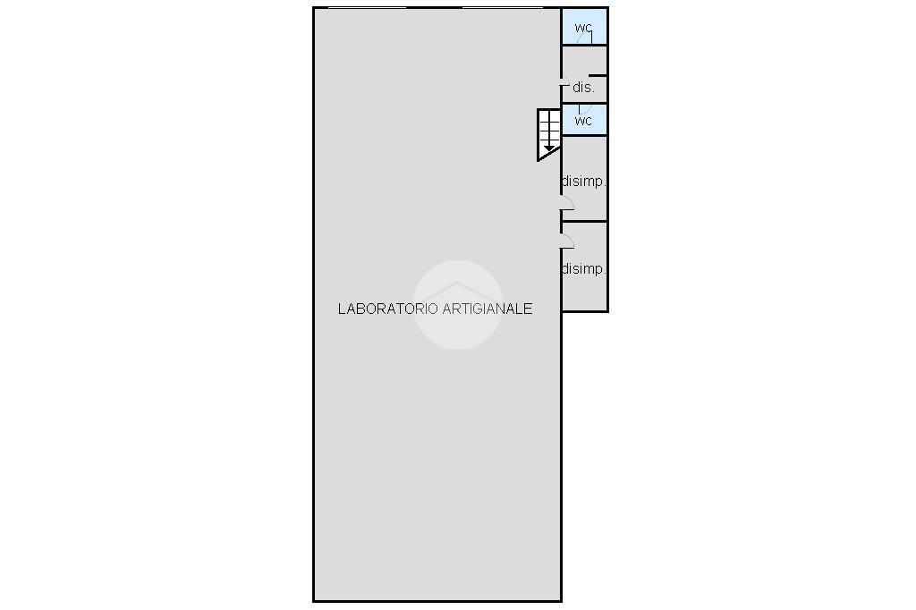 Il magazzino è posto al piano terreno e misura circa duecento metri quadrati, l'ingresso è caratterizzato da due ampi portoni con vetrate nella parte superiore, è inoltre presente un bagno di servizio ed una scala interna che conduce ad un soppalco, dove è attualmente presente la caldaia.