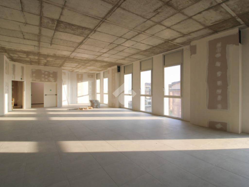 La soluzione ha una superficie che misura circa 220 metri quadrati disposti al primo piano. La pianta è distribuita in un grande ambiente open space dotato dei servizi igienici privati. La struttura è ben illuminata grazie alla presenza di ampie vetrine. L'immobile è dotato della porta blindata, dei rilevatori antincendio e dell'impianto antincendio a idranti e controllo accessi, e verrà consegnato completo dell'impianto di riscaldamento e condizionamento. È inoltre possibile l'accesso ai disabili grazie alla presenza di un comodo ascensore. Disponibili parcheggi esclusivi.