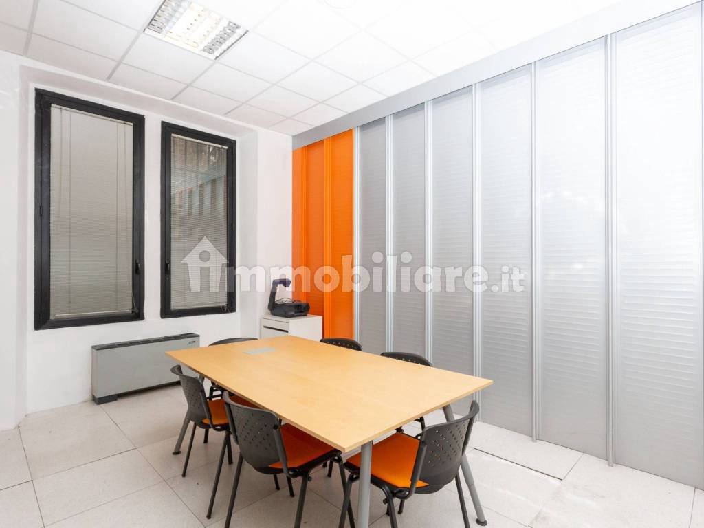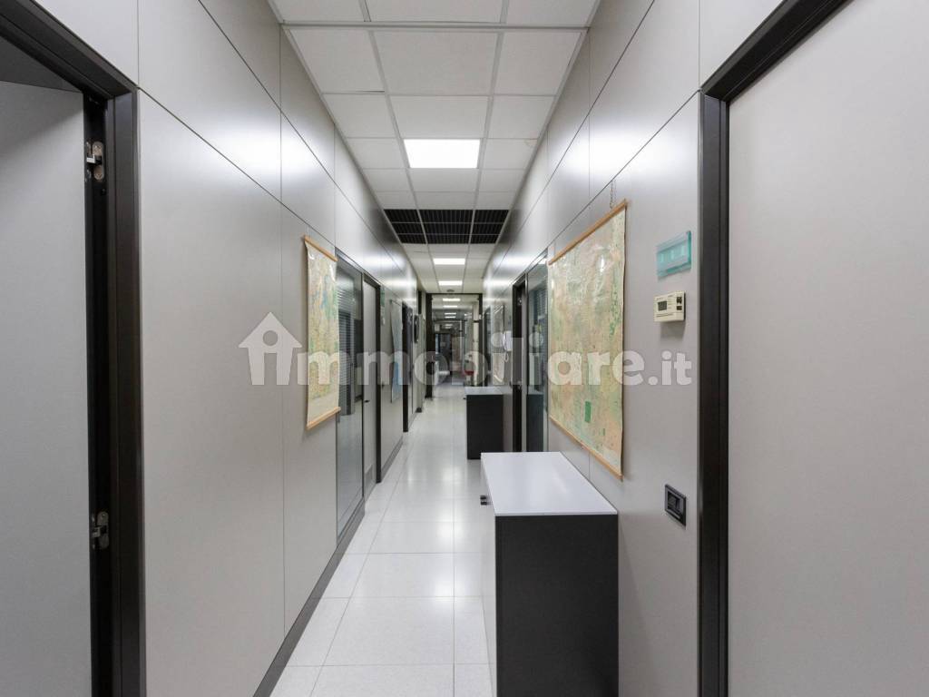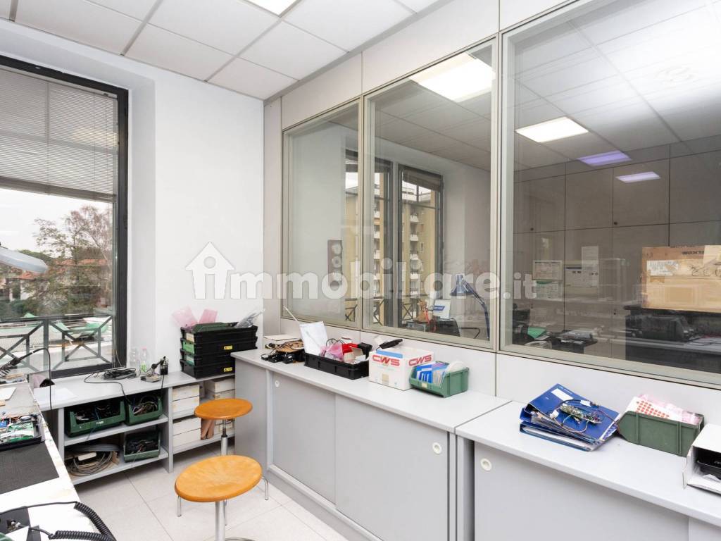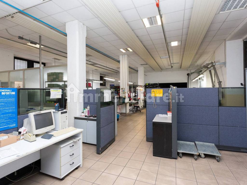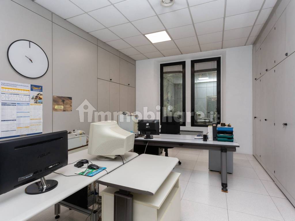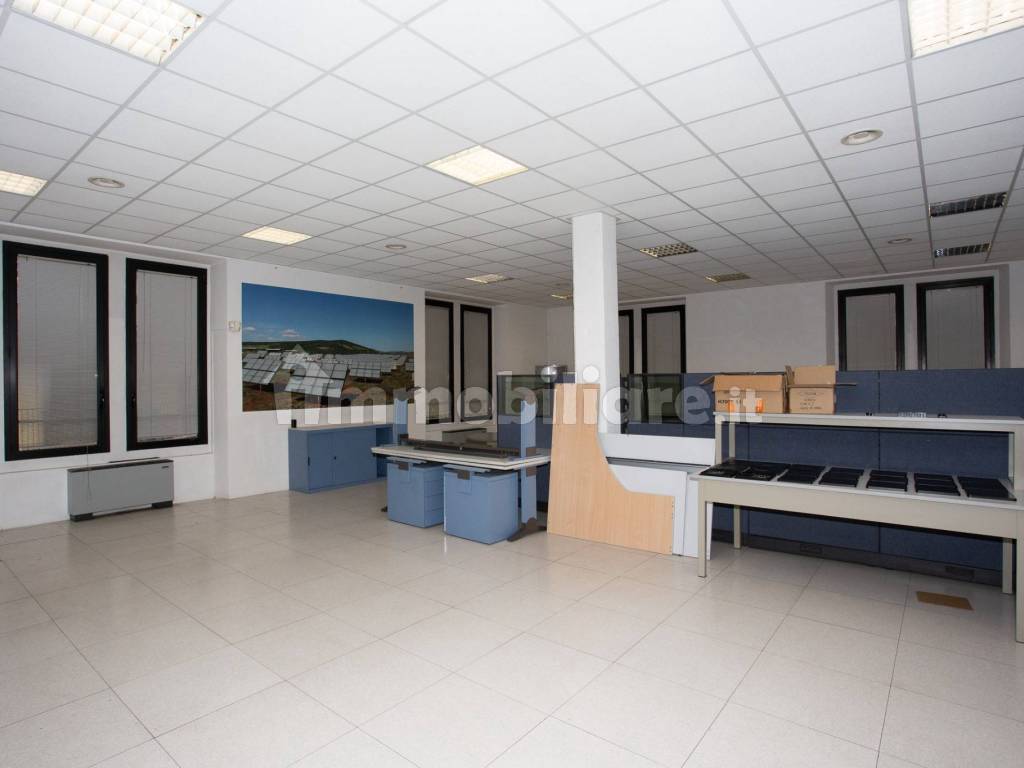 Gli uffici sono divisi con pareti mobili e cablati.