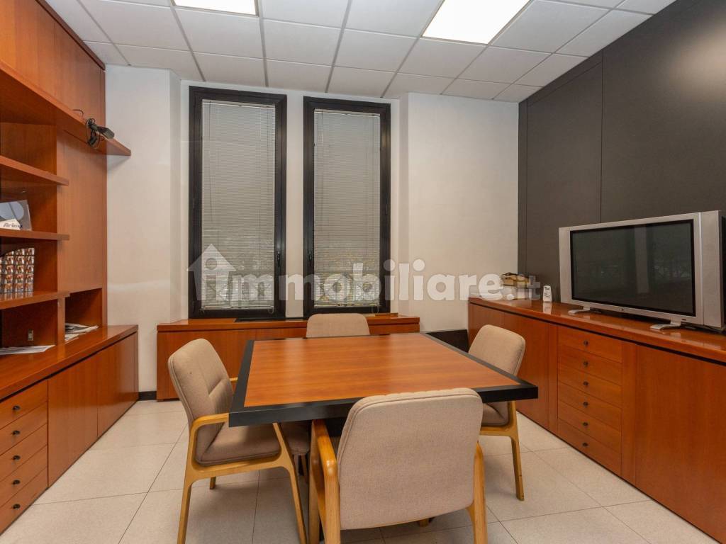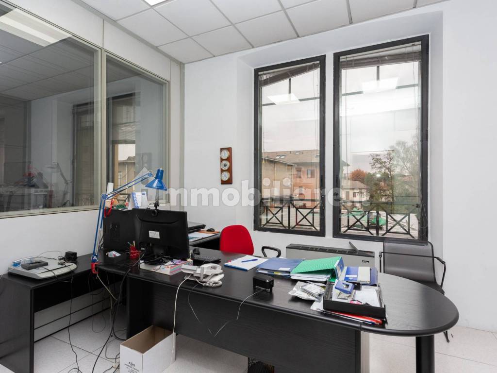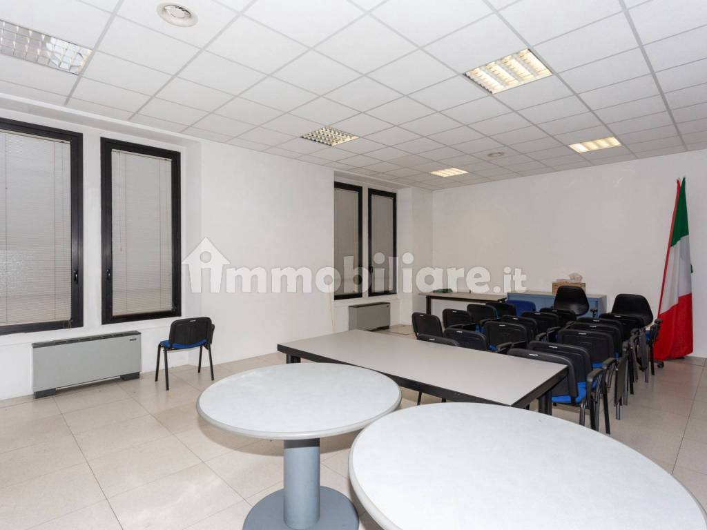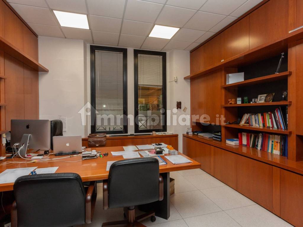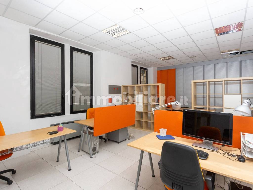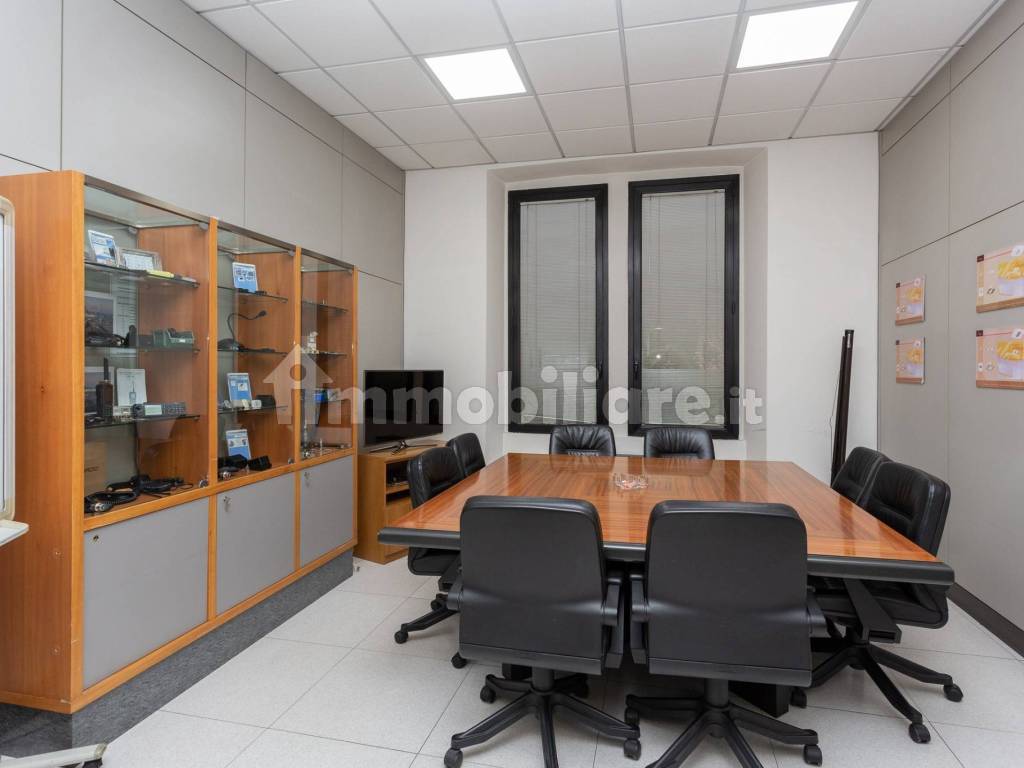 Gli uffici sono divisi con pareti mobili e cablati.