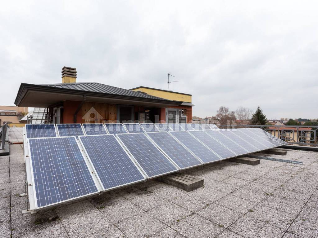 L'immobile e' dotato di riscaldamento centralizzato, condizionamento autonomo a fan-coil e impianto fotovoltaico.