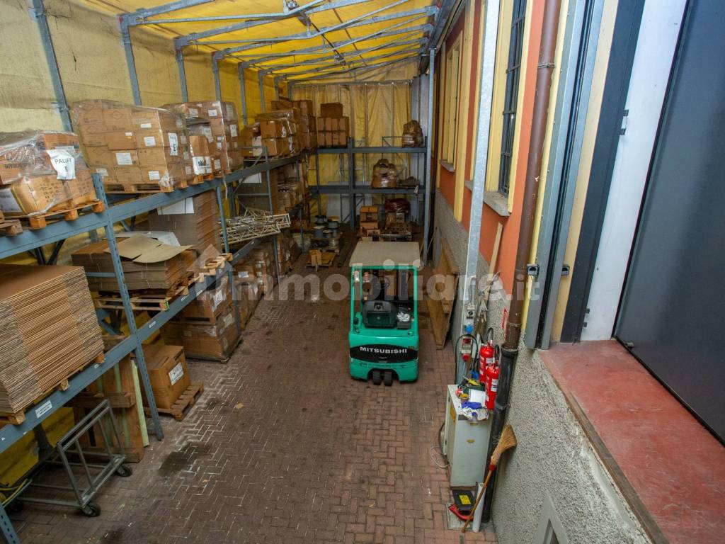 Il fabbricato è costituito da 3 piani , collegati tra loro da un vano scala interno e da scale esterne, all’interno del fabbricato è presente un vano ascensore. IL piano seminterrato di 1100 mq può essere adibito come autorimessa o magazzino con entrata indipendente tramite rampa, ad oggi viene utilizzato come laboratorio e area carico/scarico coperta.