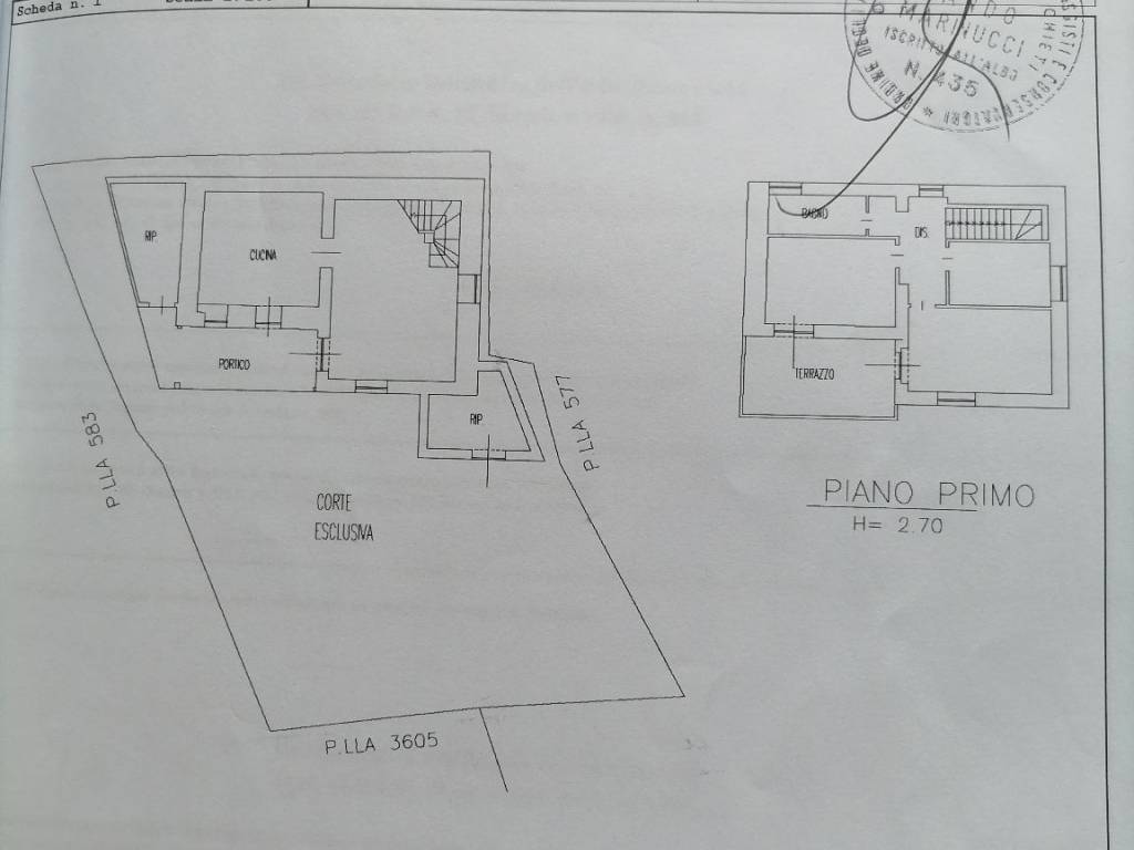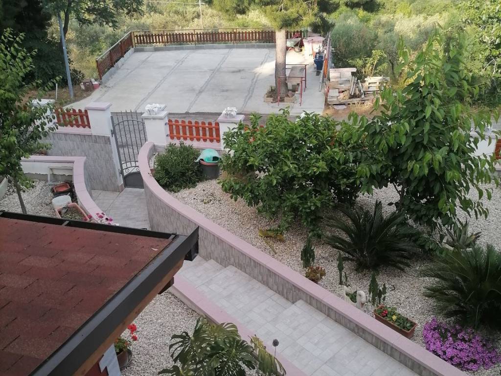 Villa von 160 qm mit Garten von 100 qm, Platz vor dem Haus von 100 qm, Grundstück davor von 1200 qm mit Olivenbäumen und Obstbäumen.
