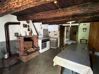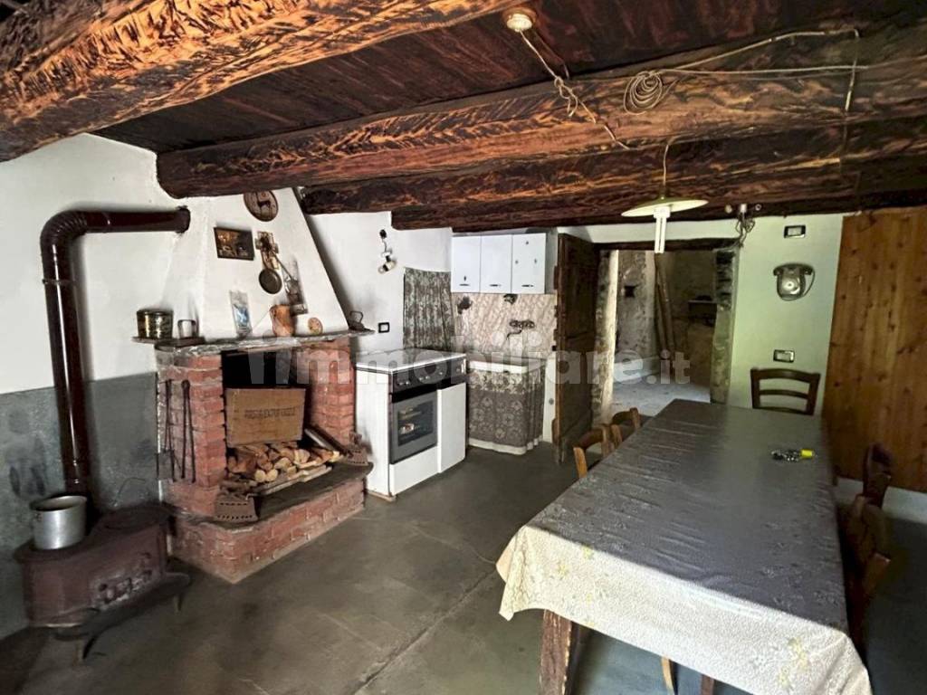 La zona abitativa, già fruibile, comprende una cucina accogliente con caminetto in pietra e stufa a legna, perfetta per le stagioni più fredde e per creare un’atmosfera calda e autentica. Dal balcone si gode una splendida vista aperta sulla valle e sulla borgata, uno spazio ideale per rilassarsi in silenzio. Sempre su questo piano si trova un bagno funzionale, completo di doccia e boiler a legna, che garantisce autonomia e comfort anche senza impianti moderni.