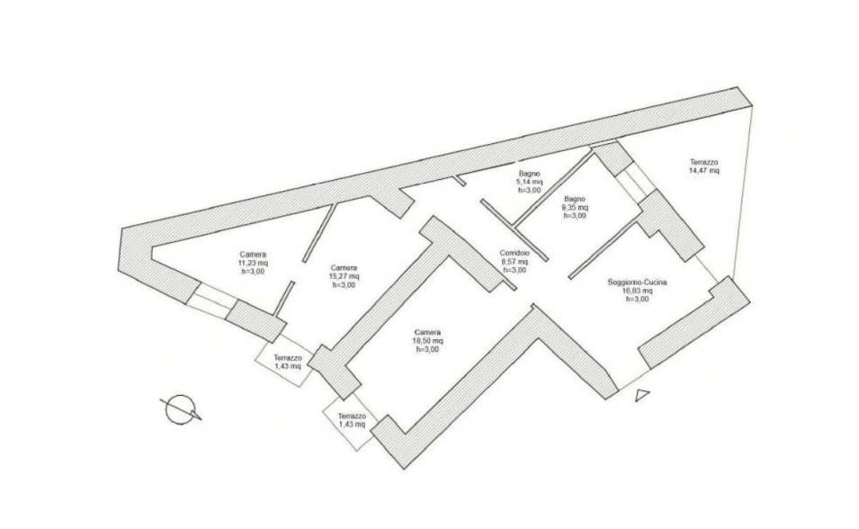 Piena ed intera proprietà di appartamento ubicato in Napoli alla via Giovanni Scherillo n. 6, secondo piano, scala “A”, composto da un soggiorno-cucina a cui si accede direttamente dalla porta di ingresso, un corridoio, dal quale si accede ai due locali per servizi igienici, tre camere da letto, di cui una con la porta di accesso nella precedente.