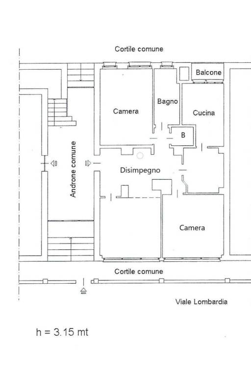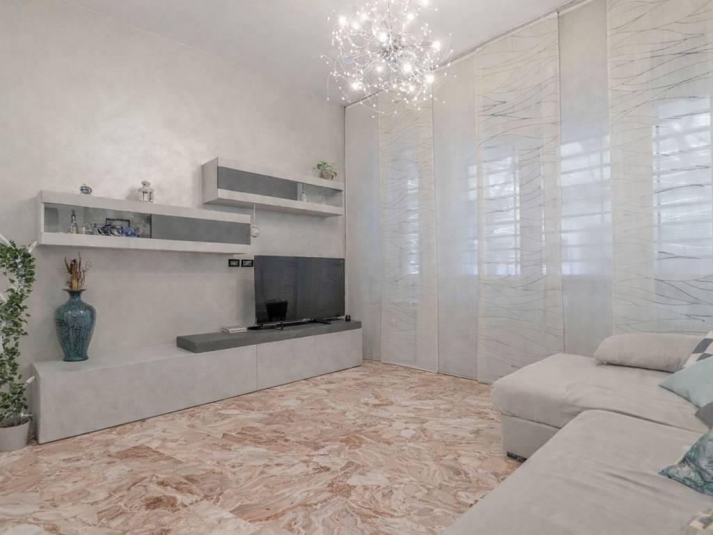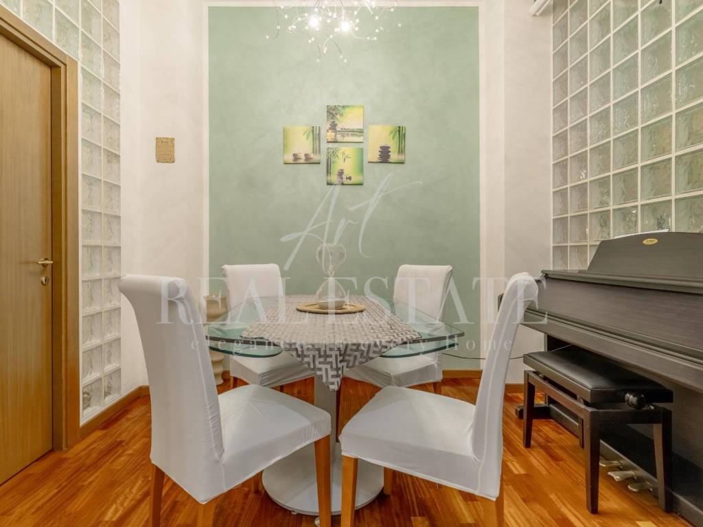 Attualmente la dimora è configurata come un ampio e razionale trilocale: l' ingresso si apre su un accogliente disimpegno che accompagna nel soggiorno, troviamo poi una cucina abitabile con accesso al balcone (che dà su cortile interno) e ad un altro ambiente che permette più utilizzi, due generose camere da letto matrimoniali e doppi servizi.