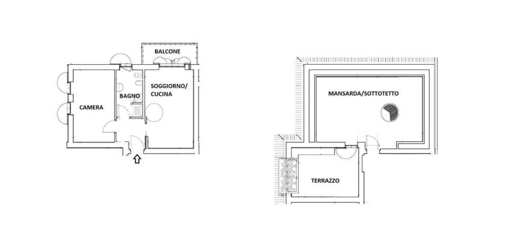 Esclusivo bilocale oltre servizi di 68 mq., cucina a vista, oltre a locale mansarda/sottotetto di 37 mq. con annesso solarium/terrazza di 14 mq. Completano la proprietà il box autorimessa e il vano cantina.