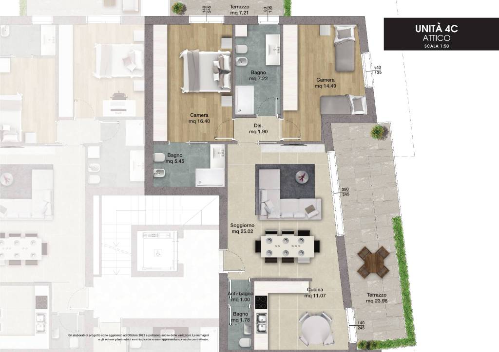 In elegante palazzina, proponiamo in vendita un esclusivo attico all’ultimo piano di circa 100 mq, caratterizzato da finiture di pregio e ampi spazi esterni.
