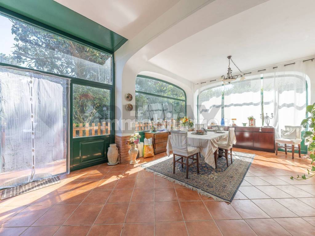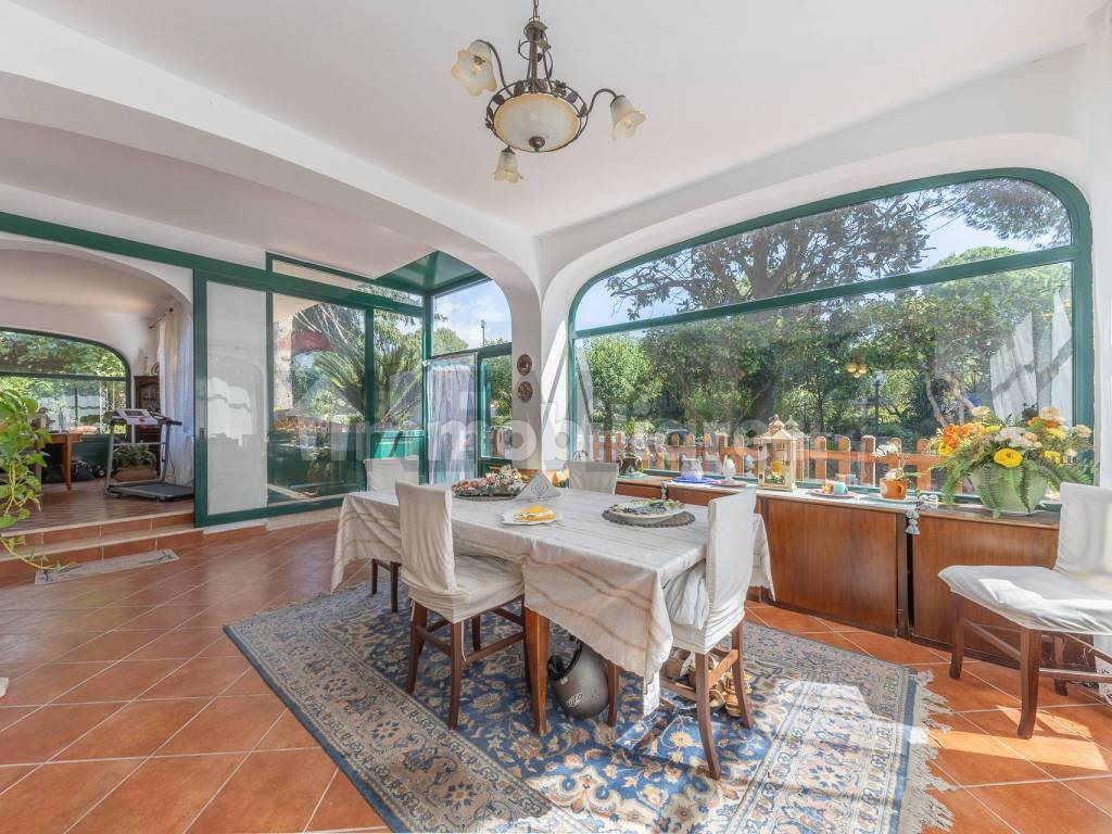 Al pano terra ci accoglie uno splendido salone con magnifiche vetrate dove l'occhio si riposa alla sola vista del giardino,