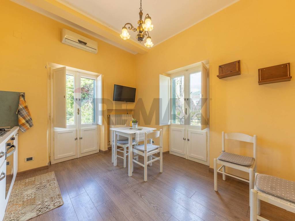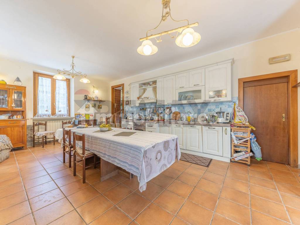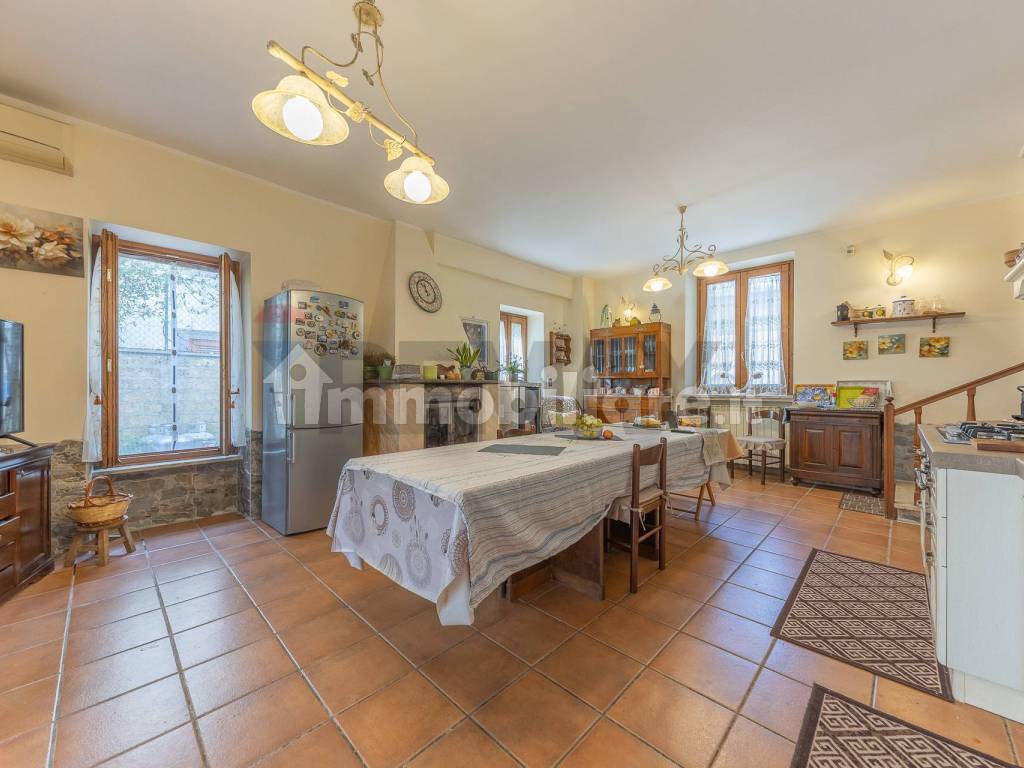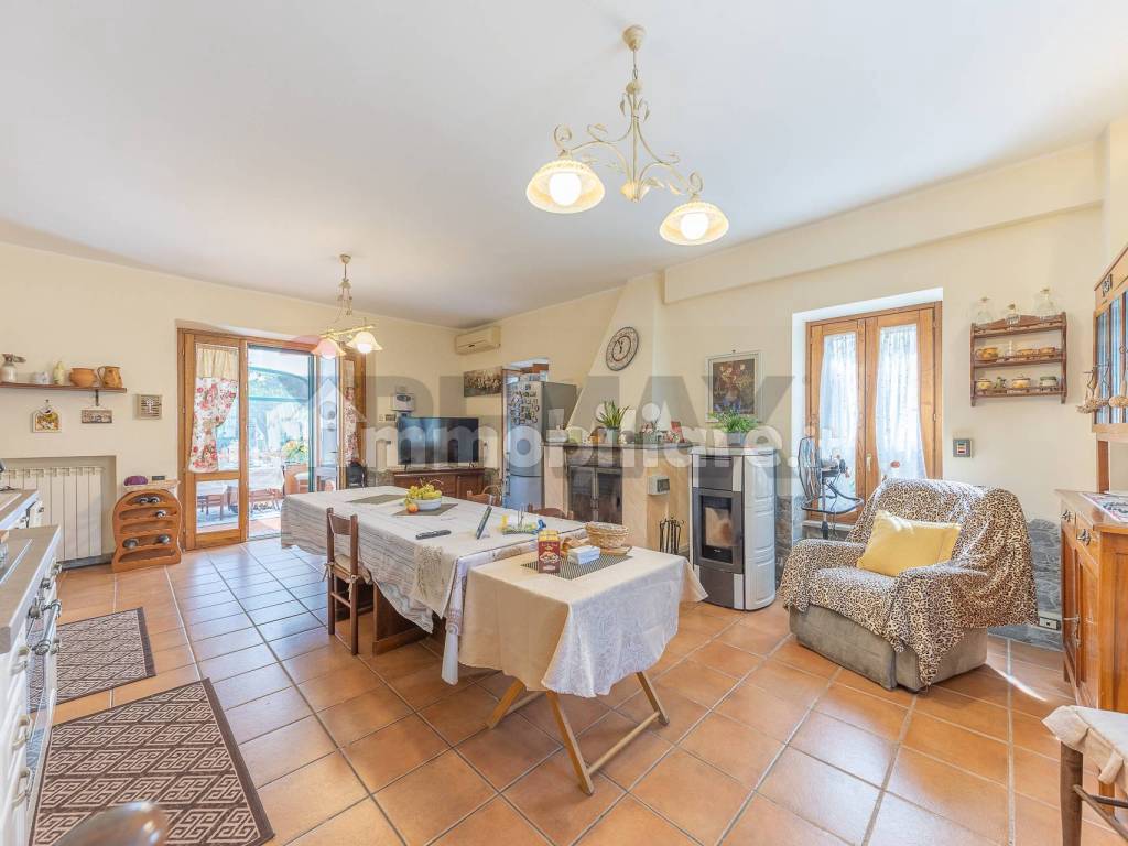 questo spazio è diviso in zona conversazione e zona pranzo adiacente ad una spaziosissima cucina pensata come le cucine di altri tempi, entrando sembra quasi di sentire il profumo di ottime pietanze , con zona operativa molto grande adatta a preparare prelibatezze per molti commensali e camino pensato per scaldare l'intera abitazione