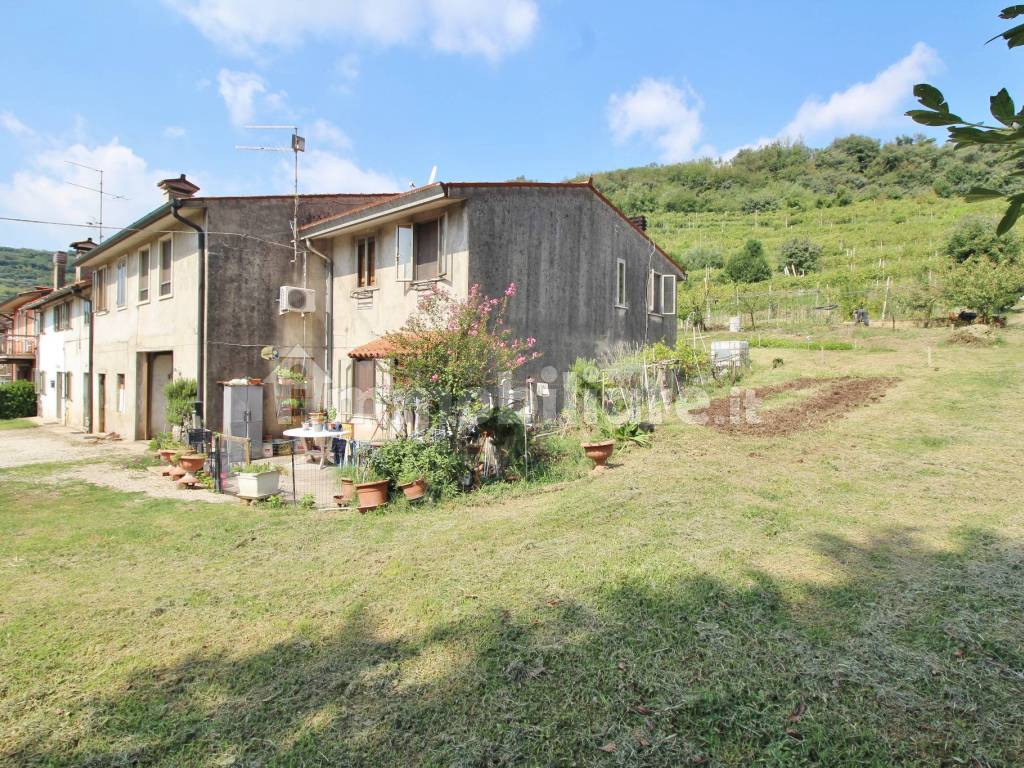 Gambellara. Proponiamo in vendita soluzione di testa con cortile e terreno esclusivo posta alla fine di una tradizionale contrà. La soluzione è composta da casa abitabile e affiancata solo in un lato e offre stanze generose soprattutto nella zona notte; al piano terra troviamo piccolo salotto con cucina abitabile separata e ripostiglio nel sottoscala, al primo piano: 3 camere, studio ripostiglio cieco, e due bagni entrambi finestrati. Al piano terra troviamo un grande garage che termina sul cortile posto sul retro, chiuso e cinto da mura, dove sono presenti comodi portici e ripostiglio. Completa l'immobile la fascia di terreno di proprietà esclusiva. Classe energetica G. Richiesti 165.000€ (AG2521-TESTA)