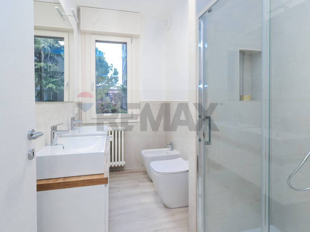 Situato in un signorile condominio di 9 piani, l'appartamento si trova al cuore di un contesto residenziale curato e silenzioso. L'immobile è stato appena oggetto di una ristrutturazione radicale, che ha trasformato i suoi 128 mq in una residenza moderna, efficiente e curata nei minimi dettagli.