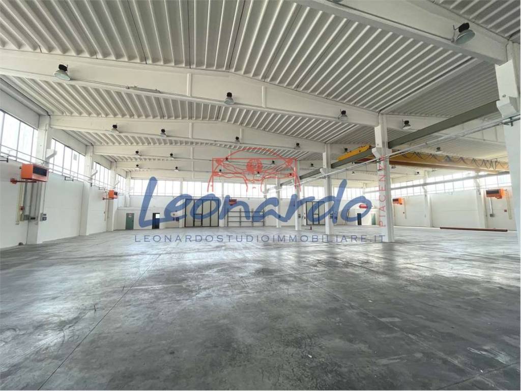 recent shed for rent in excellent condition, of 2750 sqm of production, 2 spans, equipped with n.1 bridge crane of 6.3 tons, heated, h.7.5, h. 9.35 ridge. - office building in front of approximately 500 sqm arranged on two levels with meeting/courses room. extreme close to main communication routes (tangenziale and a1 pc sud. sandro camisa 333/8010686 - leonardo real estate studio via della conciliazione 45/a piacenza