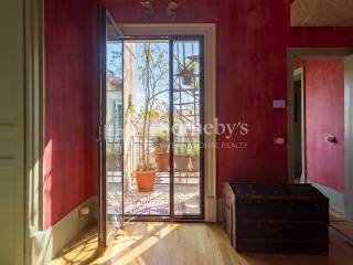 € 880,0002-room flat via Alloro, Kalsa, PalermoThis charming apartment is located between the Palazzo Abatellis Museum and the Palazzo Butera Gallery, in a completely renovated 16th-century building. The residence consists of a main living room, a second sitting room, a bedroom with a loft and en-suite bathroom, and a second bedroom alcove. The walls of the entrance hall and the ceiling are decorated with Pompeian frescoes, while the alcove is embellished with Art Nouveau stucco work, repeated on the walls in a manner unusual for the period. The hallway features harmonious floral stucco decorations, and traces of Art Nouveau motifs can al