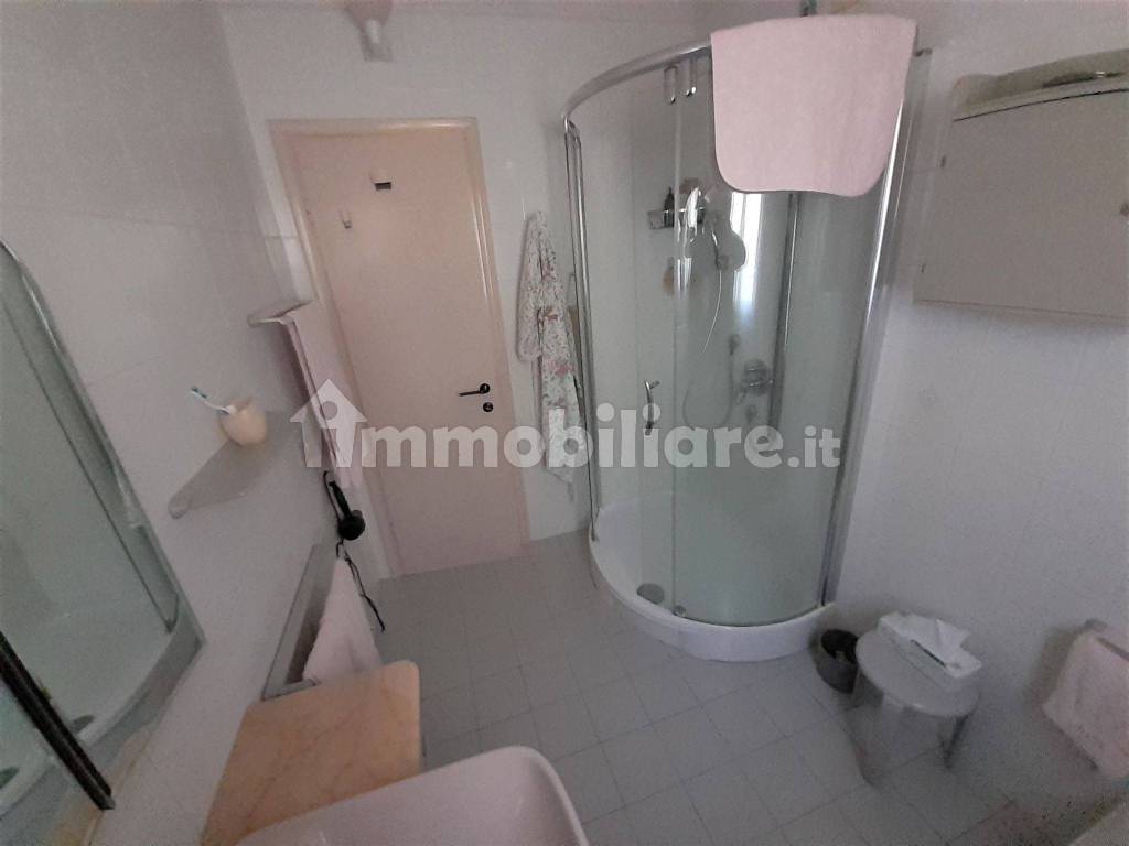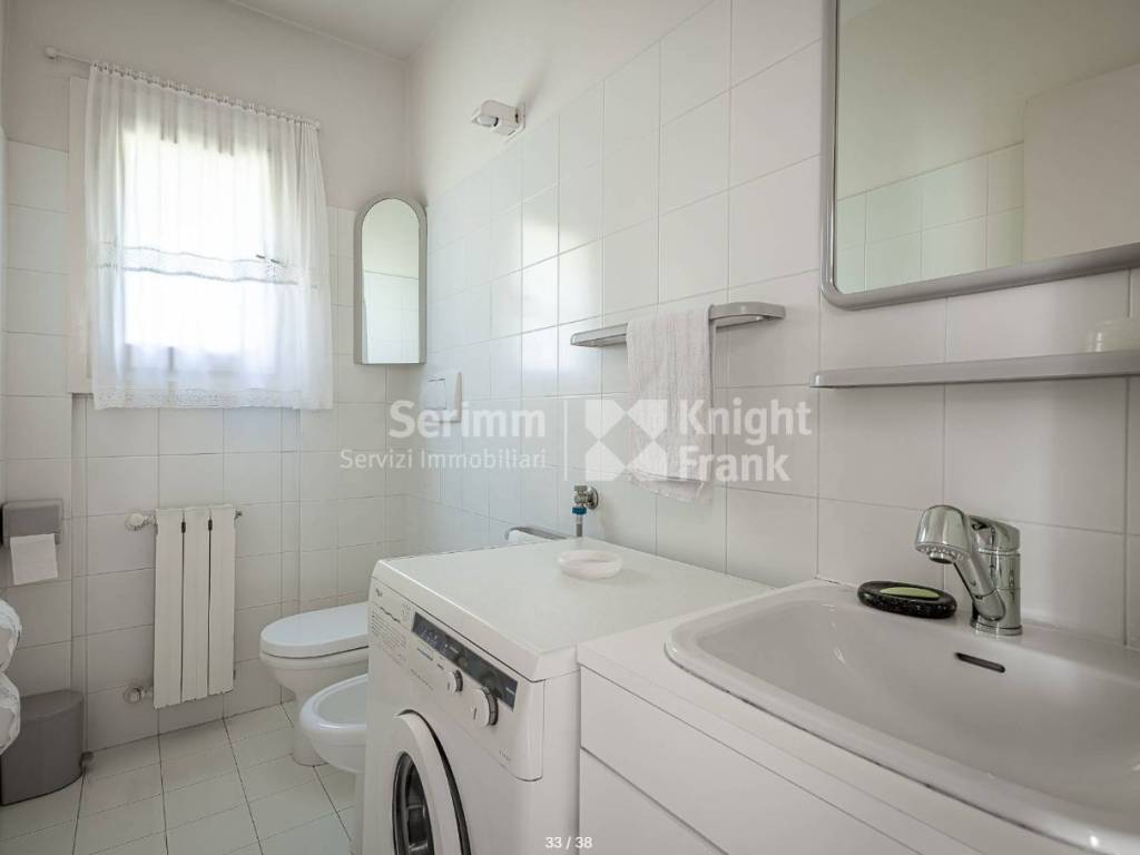 Primo piano con ingresso indipendente dal giardino sebbene comunicante tramite scala interna con piano terra e secondo piano; ampio e luminoso soggiorno di 70 mq, sala da pranzo, cucina caratteristica abitabile con barbecue con accesso diretto alla loggia di 25 mq dotata di 2° barbecue nonché alla zona pranzo vista mare (utilizzabile 10 mesi stante il clima); zona notte appartata con 2 camere matrimoniali e 2 bagni affacciate su un corridoio con belle armadiature a muro, stanza guardaroba con stireria.