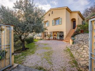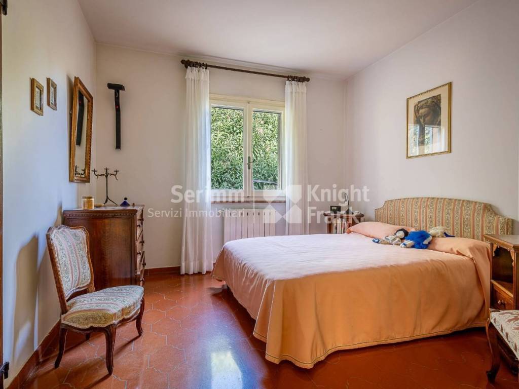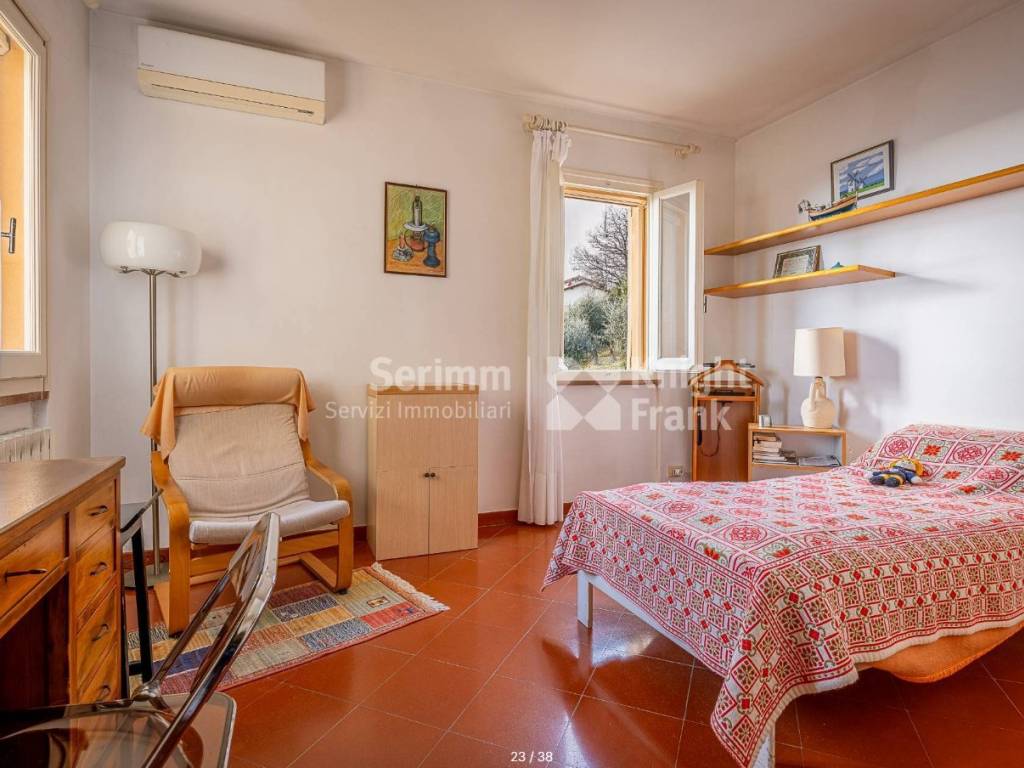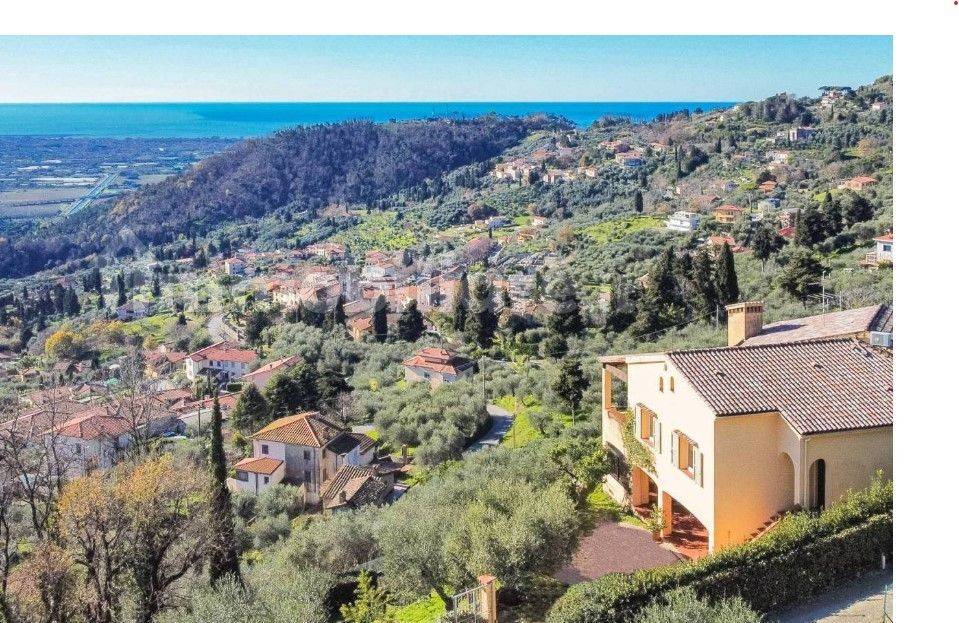 Villa signorile in bella e tranquilla area collinare, con vista mozzafiato sulle spiagge della Versilia e sulla Torre di Pisa, circondata da oliveto e giardino recintato di 2300 mq con limoni, aranci, piante decorative e vari alberi da frutto; privacy e pace eccezionali ma a soli 600 ml. da negozi, farmacia, ufficio postale, ristorante e fermata bus.