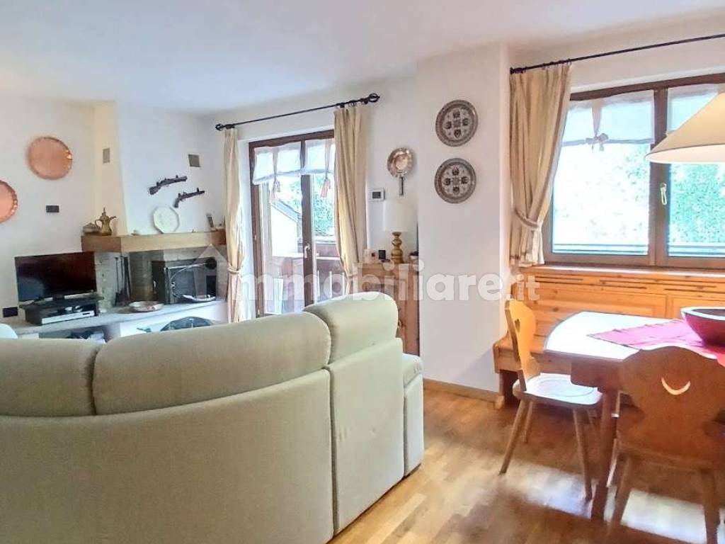 OCCASIONE IMPERDIBILE A pochi passi dal centro storico, in zona residenziale ben servita da attività commerciali, proponiamo in vendita un quadrilocale di charme su due livelli. L’appartamento é sito al secondo e terzo piano di un condominio di poche unità abitative edificato nel 1999 e ben mantenuto. Si compone al primo livello di un disimpegno di ingresso, un luminoso soggiorno con cucina a vista, caminetto e bella balconata fruibile sul lato ovest, ed un bagno con doccia e finestra. Una scala interna conduce al piano superiore, mansardato con travi a vista, composto da tre camere per un totale di sette posti letto ed un bagno con doccia e velux. I pavimenti sono in parquet di rovere in tutti i locali, salvo nei servizi, in ceramica. Le finestre ed i velux sono in legno di pino con doppio vetro e garantiscono moltissima luminosità e viste panoramiche sulle montagne. Il riscaldamento e la produzione di acqua calda sono centralizzati; il termostato è a gestione autonoma e regolabile da remoto. L’abitazione viene venduta completamente arredata con mobili realizzati su misura in legno massiccio; la cucina è completa di tutti gli elettrodomestici ed in sala è presente un divano letto matrimoniale.