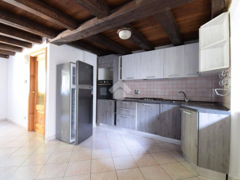 La casa, libera su due lati e da terra a cielo, è situata in una piccola frazione posta nei pressi della statale tra i comuni di Châtillon e Chambave. Essa dispone di un terreno di circa 400 mq di fronte a casa, di cui una porzione adibila a piazzale per parcheggiare ed il resto è giardino. La zona verde ospita anche il bombolone del GPL per il riscaldamento della casa. La casa dispone di un doppio ingresso in quanto era suddivisa in due unità immobiliari distinte. Al piano terreno/rialzato l'ingresso apre direttamente sull'ampia zona giorno con angolo cottura. La cucina è ammobiliata e ben tenuta. Questo spazio è già dotato di una stufa a pellet per integrare il riscladamento tradizionale. La sala si completa con un terrazzino posto a Ovest. il vano scale funge anche da disimpegno tra la zona giorno, la zona notte, il sottotetto e il piano seminterrato. Un camera da letto matrimoniale ed il bagno finestrato con doccia completano questo livello. Il sottotetto non abitabile è suddiviso in tre ampi spazi utili come depositi o stanze aggiuntive. Il secondo accesso è posto al piano seminterrato ed avviene da una corte di pertinenza parzialemnte coperta. La grande cucina può essere utilizzata come taverna. La camera su questo livello è di grandi dimensioni. Il bagno è cieco e dotato di vasca. La costruzione si presenta in ottimo stato di conservazione e rappresenta un'occasione per chi cerca una casa con due appartamenti o una soluzione per una famiglia numerosa.