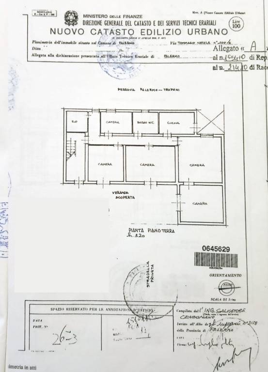 Appartamento sito in via Tommaso Natale, a pochi passi dall'omonima piazza ed in zona ben fornita di servizi e collegamenti con le principali zone della periferia nord. Situato all'interno di un piccolo complesso con stradella d'accesso, la proprietà in vendita si sviluppa per una superficie di 145 mq al piano rialzato, con terrazzo antistante chiuso da cancelletto. Entrando troviamo un ampio ingresso con corridoio che separa un comodo salone, 3 camere da letto spaziose, cucina, bagno e ripostiglio. Complessivamente in condizioni da ristrutturare, già presente impianto di riscaldamento ed infissi alluminio con vetrocamera. Di particolare rilevanza un terrazzo sovrastante accessibile dall'interno. Libero da subito e visitabile tutti i giorni previo avviso telefonico. APE g.