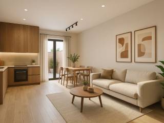 Nella versione abitazione unica, il piano terra accoglie una luminosa zona living open-space, con accesso diretto alla corte esterna privata: Uno spazio intimo e riservato, perfetto per rilassarsi o trascorrere piacevoli momenti in compagnia.