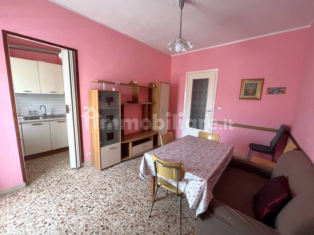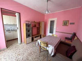L’immobile, sito al quarto piano di una palazzina dotata di ascensore, è così composto: ingresso su disimpegno, tinello con cucinino, una camera da letto di generosa metratura, bagno con vasca e due balconi.
