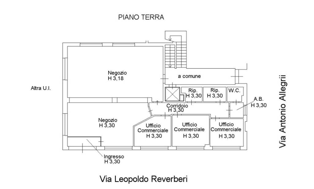 Nel comune di Casalgrande frazione Salvaterra proponiamo in vendita negozio di circa 190 mq. fronte strada provinciale 66, arteria ad alta intensità di transito veicolare. L’unità immobiliare, adibita in passato a sede di una filiale bancaria, è posta al piano terra di un edificio sviluppato su quattro livelli. Internamente, il negozio si presenta con due ampi ambienti open space ai quali si aggiungono tre uffici, due ripostigli, un servizio igienico con antibagno tutti svincolati da un corridoio comune. Sono presenti due cantine al piano interrato. Impianti tecnologici presenti ma privi di certificazione. L’area esterna privata ad uso pubblico consente un comodo parcheggio.