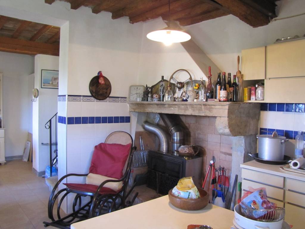 Dal disimpegno si accede ad un bellissimo salone di circa 50 mq, al quale si può accedere dall'ingresso principale della casa attraverso una scala in pietra di 14 gradini. L'immobile è caratterizzato da soffitti a capriate (tetto coibentato nel 2011), travi e travicelli originali, pavimenti in cotto, tre stufe a legno all'interno di altrettanti camini in pietra perfettamente funzionanti. Vista panoramica sul 4 lati (punti cardinali) e molto luminoso. Ideale per coppia o famiglia che desidera un'angolo di pace immerso nel verde. Richiesta € 318.000 poco trattabili.