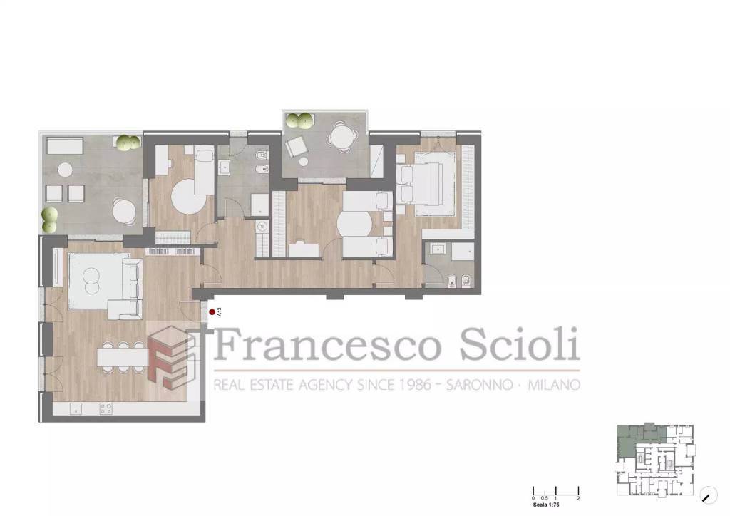 All'interno della nuova costruzione, in fase di realizzazione, proponiamo in vendita, al tredicesimo piano, un quadrilocale di 167,40 mq commerciali con due logge (A13).