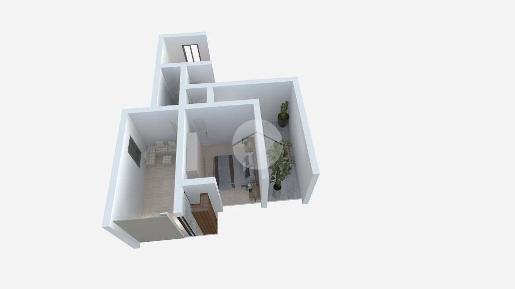 Dalla porta d’ingresso si accede a un comodo disimpegno, che introduce nella zona giorno, composta da un ampio e luminoso soggiorno con cappottiera e una grande finestra che dona luce naturale per tutto il giorno. Adiacente al soggiorno si trova la camera da letto matrimoniale, anch’essa finestrata e ben arieggiata. Il bagno, moderno e curato nei particolari, è dotato di box doccia. Da una porta finestra si accede al terrazzino, rappresenta un piacevole spazio esterno dove rilassarsi o godersi un momento all’aria aperta. Completa la proprietà una cucina non abitabile, con doppia finestra su prospetto laterale, che rende l’ambiente luminoso e pratico.