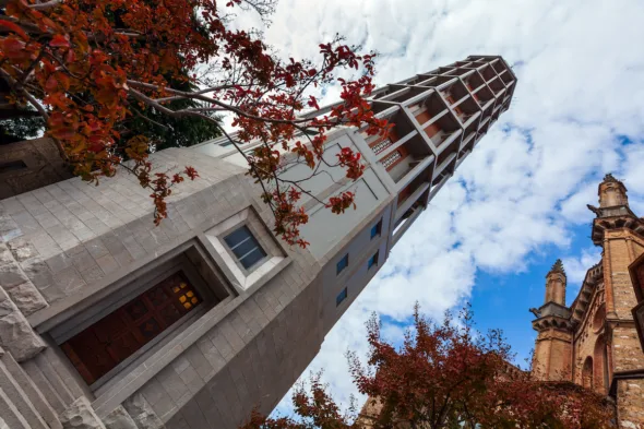 La scelta di usare il calcestruzzo, oltre a essere un segnale di modernità, permise di realizzare una significativa altezza senza ingrandire la base dell’edificio