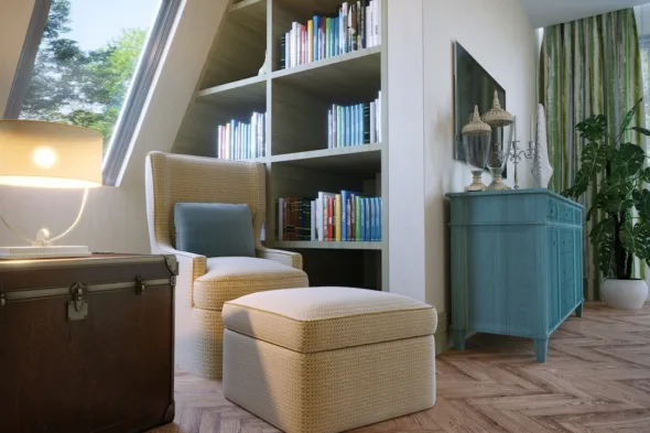 Se i libri sono il mondo nel quale preferite immergervi, usate l’angolo morto per ricavare uno spazio di lettura. Sistemate una poltrona, una lampada dalla luce calda e accogliente e un ripiano dove sistemare i libri in lettura, il segnalibro e l’immancabile tazza di tè. Se lo spazio è sufficiente, aggiungete un tappeto e un tavolino vero e proprio, magari di quelli con contenitore dove riporre una coperta.