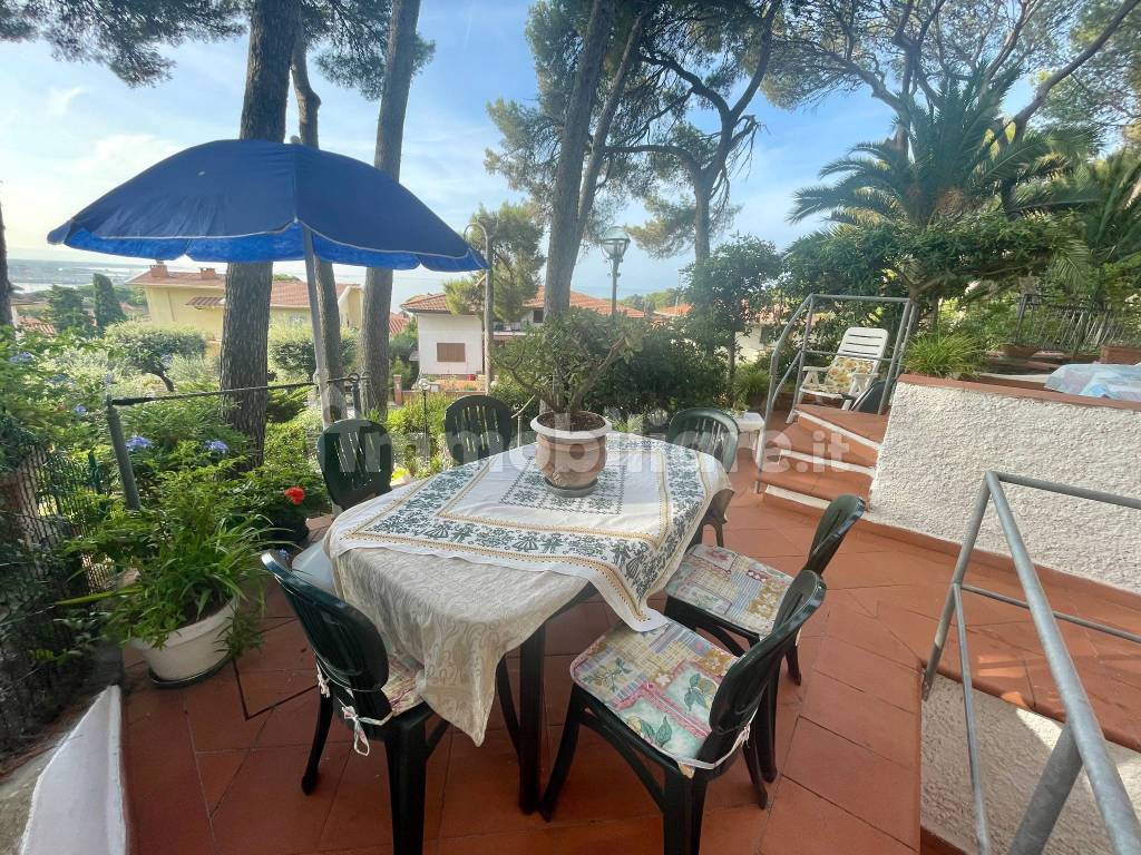Nella splendida Castiglioncello Perla del Tirreno vendo un appartamento vista mare con ampio giardino esterno terrazzato dove si può pranzare, prendere il sole e vivere la giornata in relax sotto l'ombra dei pini. L'appartamento è composto da due camere matrimoniali, camera singola, ripostiglio, bagno, cucina e tinello/salotto. Giardino esterno con ingresso singolo di proprietà esclusiva. Nell'appartamento è presente un condizionatore/pompa di calore per le giornate più calde oppure più fredde.