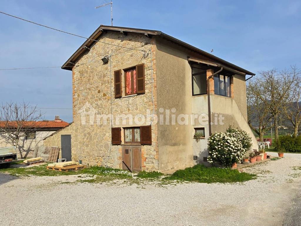 Casale con terreno e vista Lago Nella campagna tra Baschi e Montecchio, a pochi km da Orvieto, proponiamo un casale in pietra di con circa 7 ettari di terreno. Il casale ( 115mq con possibilità di ampliare con 100mq e trasformare il deposito di circa 50 mq in abitazione ) si sviluppa su due piani con una taverna (ristrutturata recentemente) con angolo cottura, zona giorno con camino e un wc. Con accesso dal separato troviamo anche una cantina e un garage al piano terra. Da una scala esterna si accede al primo piano dove troviamo una cucina con camino, due camere, un bagno e un ripostiglio. Dalle finestre, vista panoramica sulla bellissima campagna con il Lago di Corbara e Civitella sul Lago sullo sfondo. Acqua comunale, pozzo, due camini. una stufa a pellet, termosifone e caldaia a gas ( GPL) per il riscaldamento. Completa la proprietà un annesso di nuova costruzione con garage e cantina, un pollaio, una legnaia e una antica ed ampia cantina scavata nella roccia. Ottimo terreno pianeggiante con circa mezzo ettaro di uliveto e oltre 6ha di seminativo. Accesso comodissimo dalla strada provinciale. Una perfetta situazione per chi vuole abitare nella bellissima campagna ma senza essere isolata.