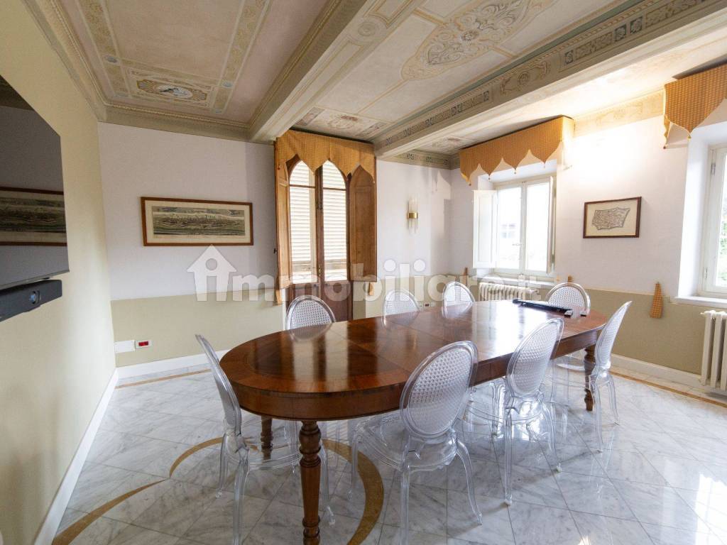In lussuoso palazzo oggetto di ristrutturazione nel 2025 (e precedente ristrutturazione nel 2010), interamente destinato a uffici professionali (già popolato in parte da commercialisti e consulenti su altri piani), offriamo in affitto piano I di ampio metraggio, comprensivo a sala riunioni in comune a pian terreno affrescata e dotata di dispositivi per video conferenze di ultima generazione. Nel canone è inclusa reception con personale e sala d'attesa. L'immobile ha finiture di alto pregio, con pavimenti in marmo di Carrara e marmo Siena ocra nelle zone comuni e nell'ascensore (accessibile a disabili), pavimenti in parquet massello di ciliegio nelle stanze del piano primo, doppi infissi in stile e persiane in alluminio di recente installazione. Immobile cablato con fibra ottica e firewall su singolo piano compatibilmente con la normativa privacy. Possibilità di installazione di gruppo di continuità con prese elettriche dedicate. Utenze non incluse nel canone.